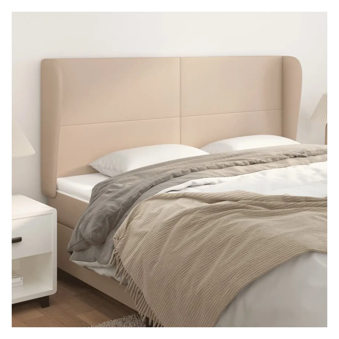 Cette tête de lit avec oreilles classique au design élégant donne à votre cadre de lit un aspect complet et convient à toute chambre à coucher. Similicuir durable : le similicuir de qualité supérieure est un matériau très durable. Il est résistant aux taches, ce qui le rend facile à nettoyer avec un chiffon humide. La surface lisse donne également un aspect luxueux et la beauté du cuir véritable.Des pieds robustes et stables : les pieds en bois assurent la robustesse et la stabilité.Hauteur réglable : la tête de lit est réglable en hauteur selon vos préférences.Excellent soutien : la tête de lit vous offre un excellent soutien du dos lorsque vous êtes assis dans votre lit pour lire ou regarder la télévision. Remarque :La livraison comprend uniquement la tête de lit. Le cadre de lit et le matelas ne sont pas inclus. Vous pouvez consulter notre boutique pour les cadres et matelas assortis.Chaque produit est livré avec un manuel de montage dans la boîte pour un montage facile.