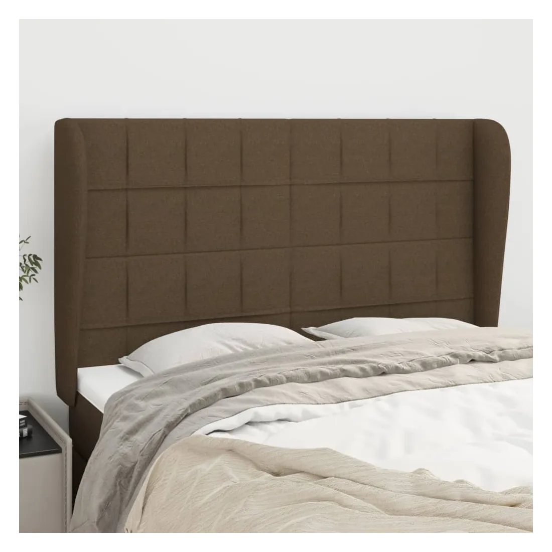 Tête de lit avec oreilles Marron foncé 147x23x118/128 cm Tissu