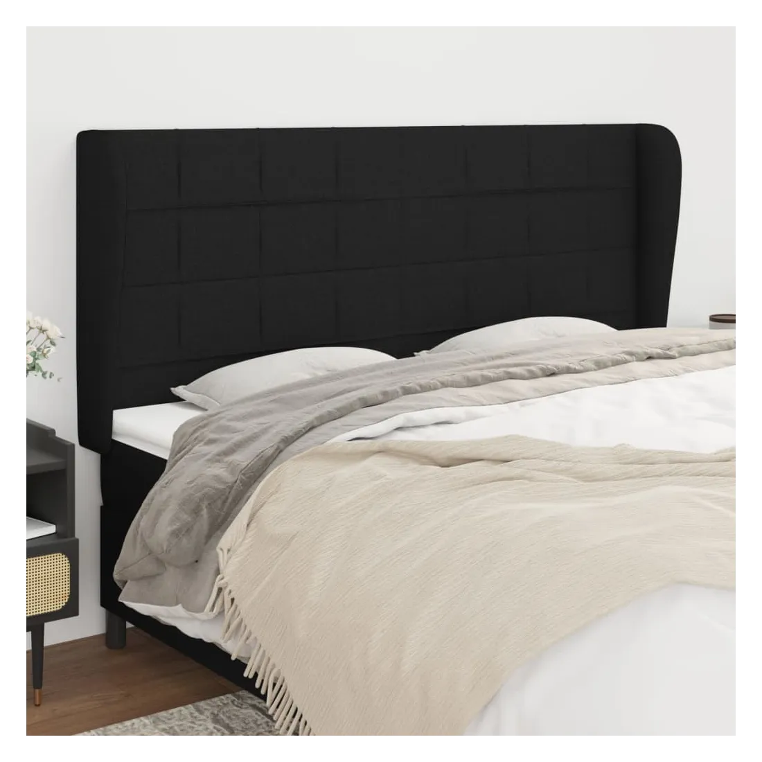Tête de lit avec oreilles Noir 183x23x118/128 cm Tissu