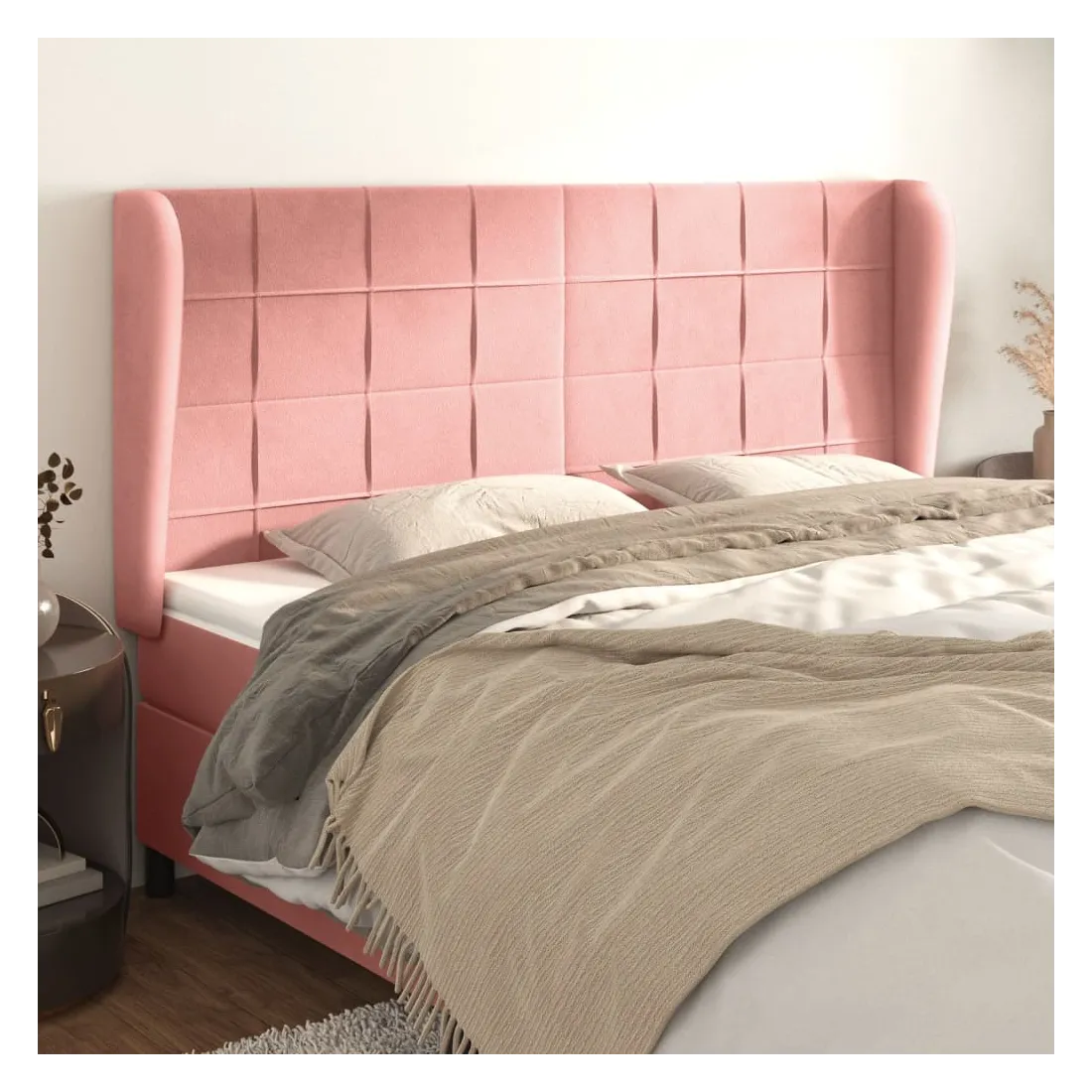 Tête de lit avec oreilles Rose 163x23x118/128 cm Velours
