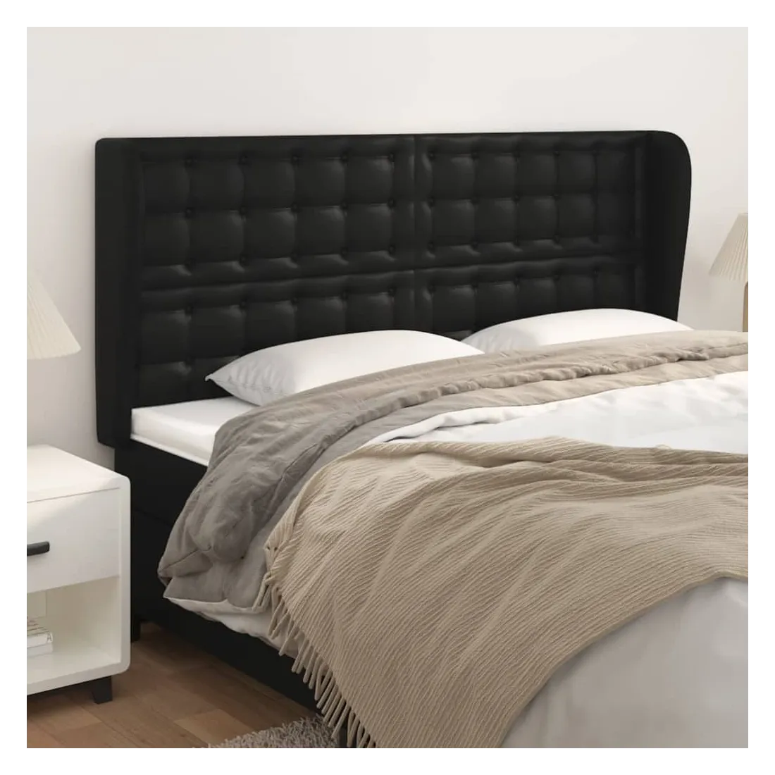 Tête de lit avec oreilles Noir 163x23x118/128 cm Similicuir