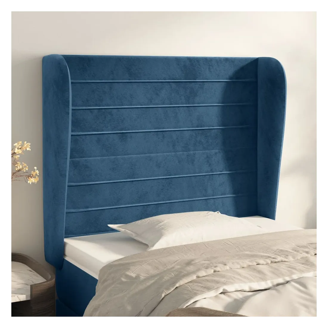 Tête de lit avec oreilles Bleu foncé 83x23x118/128 cm Velours