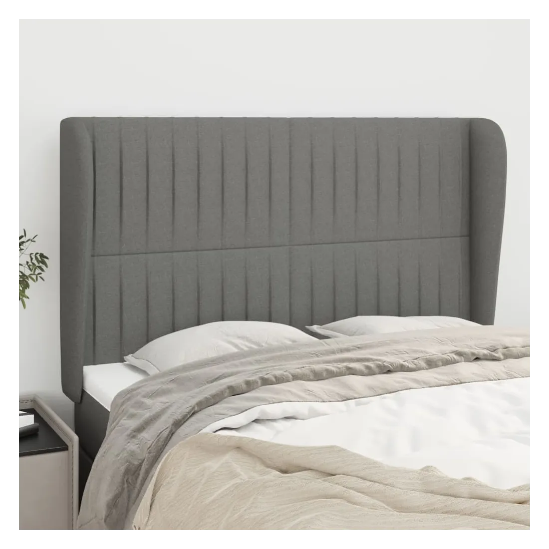 Tête de lit avec oreilles Gris foncé 147x23x118/128 cm Tissu