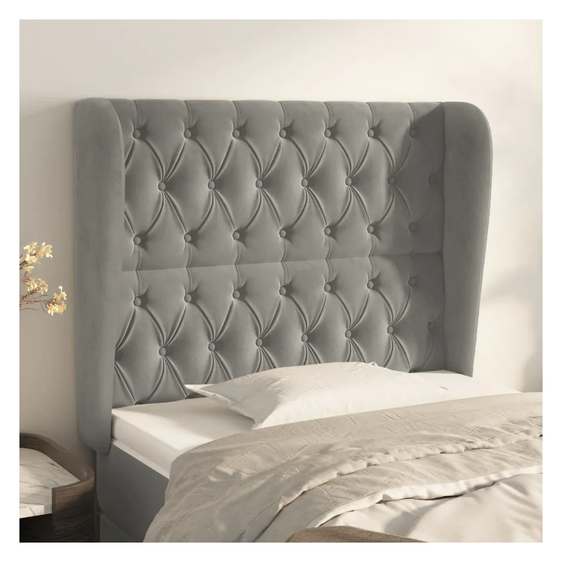 Tête de lit avec oreilles Gris clair 93x23x118/128 cm Velours