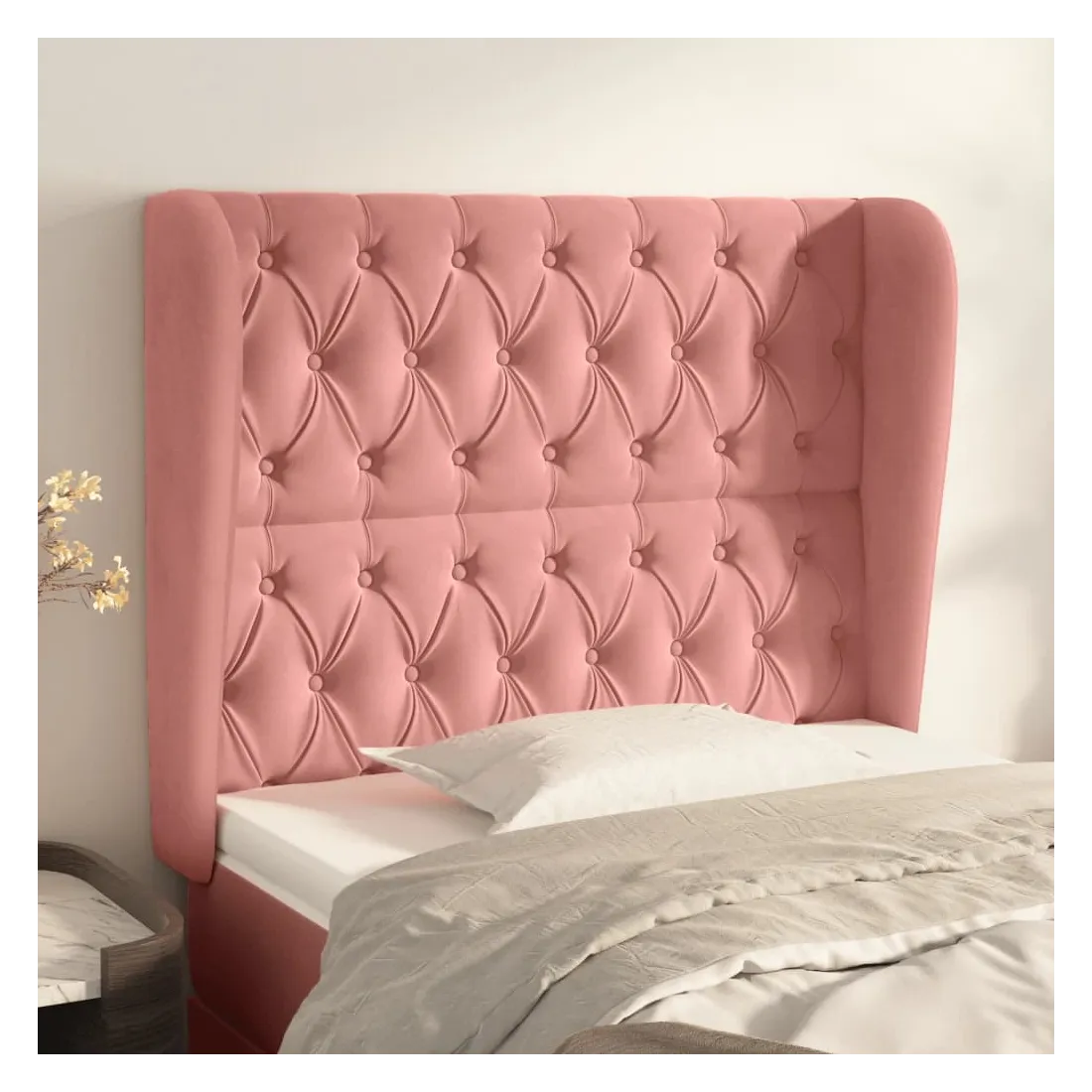 Tête de lit avec oreilles Rose 93x23x118/128 cm Velours