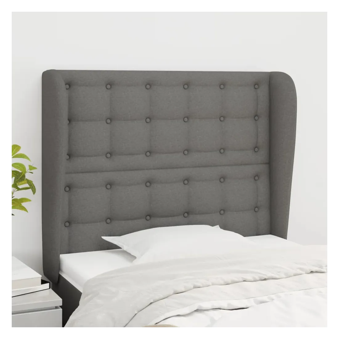 Tête de lit avec oreilles Gris foncé 83x23x118/128 cm Tissu