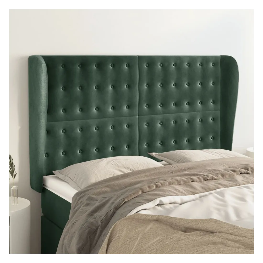 Cette tête de lit avec oreilles classique au design élégant donne à votre cadre de lit un aspect complet et convient à toute chambre à coucher. Velours doux : le velours est un tissu doux et luxueux qui se reconnaît à son tas dense de fibres uniformément coupées qui ont une touche lisse. Le tissu en velours présente un toucher doux distinctif, ce qui le rend confortable au toucher.Pieds robustes et stables : les pieds en bois assurent la robustesse et la stabilité.Hauteur réglable : la tête de lit est réglable en hauteur selon vos préférences.Excellent soutien : la tête de lit vous offre un excellent soutien du dos lorsque vous êtes assis dans votre lit pour lire ou regarder la télévision. Remarque :La livraison comprend uniquement la tête de lit. Le cadre de lit et le matelas ne sont pas inclus. Vous pouvez consulter notre boutique pour les cadres et matelas assortis.Chaque produit est livré avec un manuel de montage dans la boîte pour un montage facile.