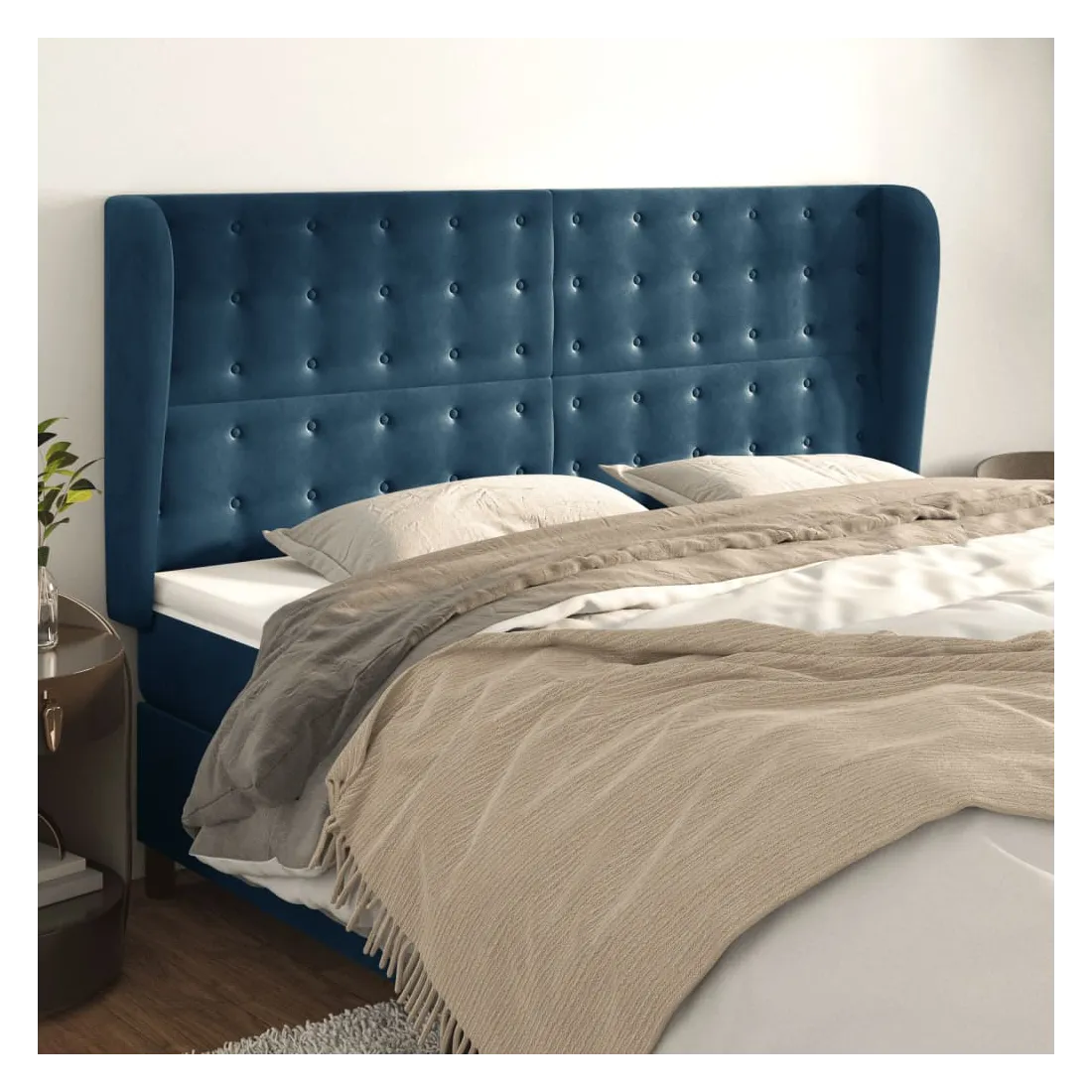 Tête de lit avec oreilles Bleu foncé 183x23x118/128 cm Velours