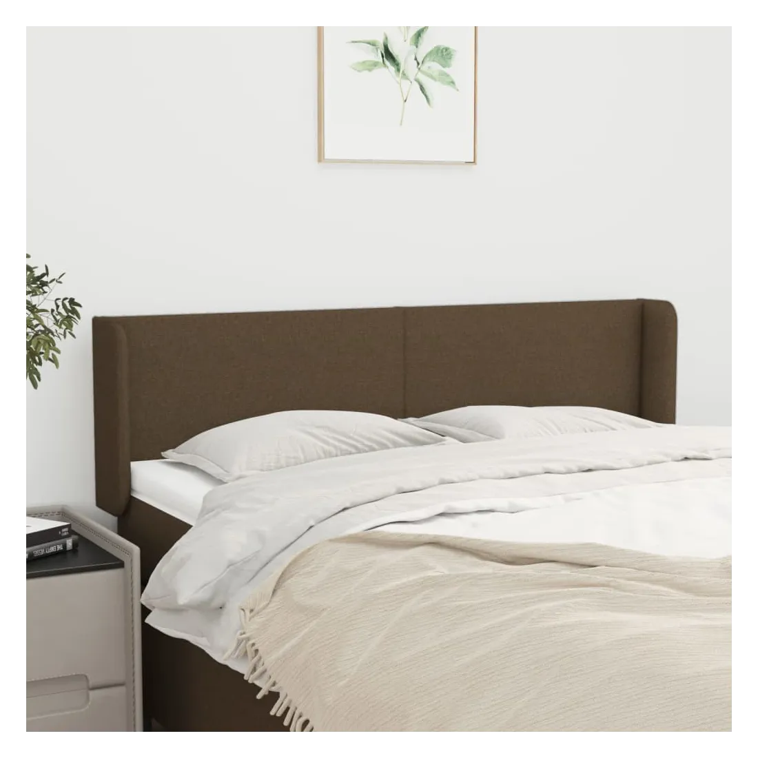 Tête de lit avec oreilles Marron Foncé 147x16x78/88 cm Tissu