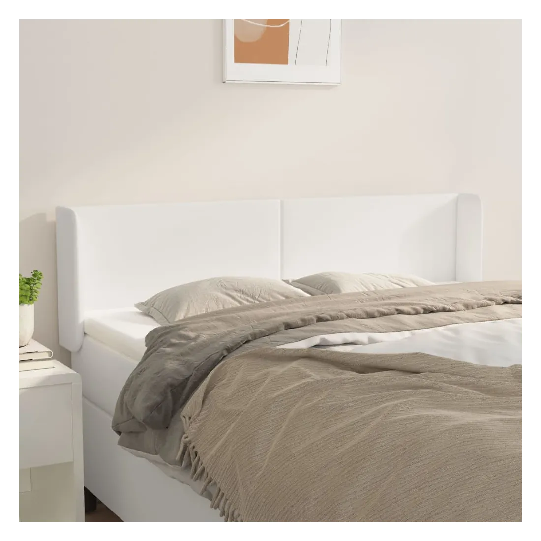 Cette tête de lit avec oreilles classique au design élégant donne à votre cadre de lit un aspect complet et convient à toute chambre à coucher. Similicuir durable : le similicuir de qualité supérieure est un matériau très durable. Il est résistant aux taches, ce qui le rend facile à nettoyer avec un chiffon humide. La surface lisse donne également un aspect luxueux et la beauté du cuir véritable.Pieds robustes et stables : les pieds en bois assurent la robustesse et la stabilité.Hauteur réglable : la tête de lit est réglable en hauteur selon vos préférences.Excellent soutien : la tête de lit vous offre un excellent soutien du dos lorsque vous êtes assis dans votre lit pour lire ou regarder la télévision. Remarque :La livraison comprend uniquement la tête de lit. Le cadre de lit et le matelas ne sont pas inclus. Vous pouvez consulter notre boutique pour les cadres et matelas assortis.Chaque produit est livré avec un manuel de montage dans la boîte pour un montage facile.
