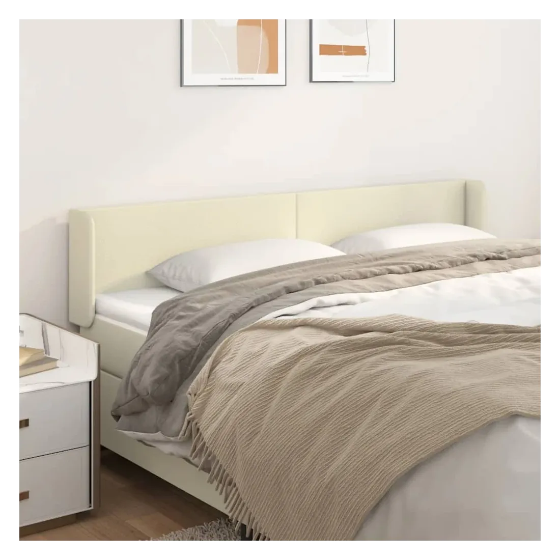 Tête de lit avec oreilles Crème 203x16x78/88 cm Similicuir