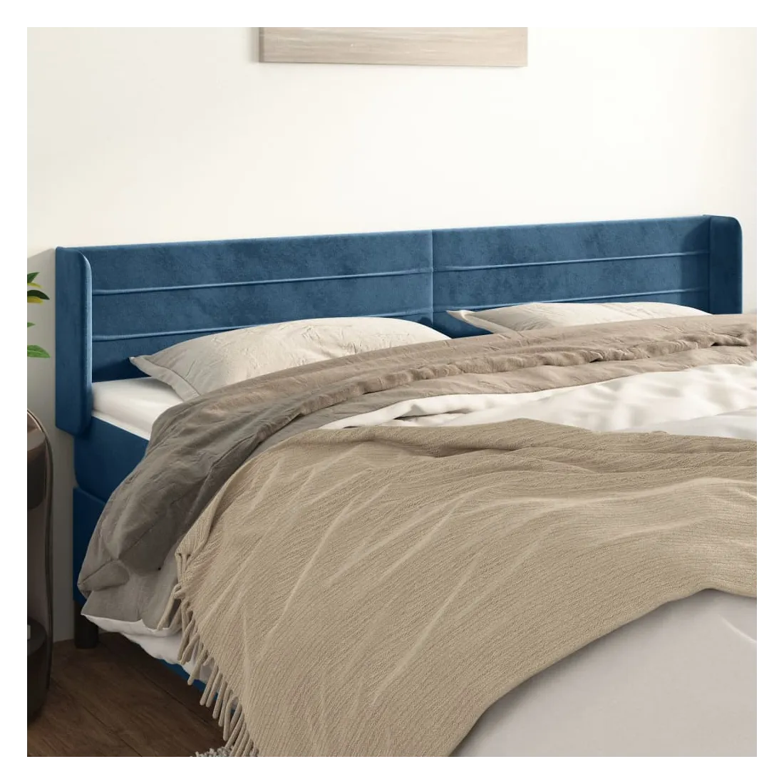 Tête de lit avec oreilles Bleu foncé 183x16x78/88 cm Velours