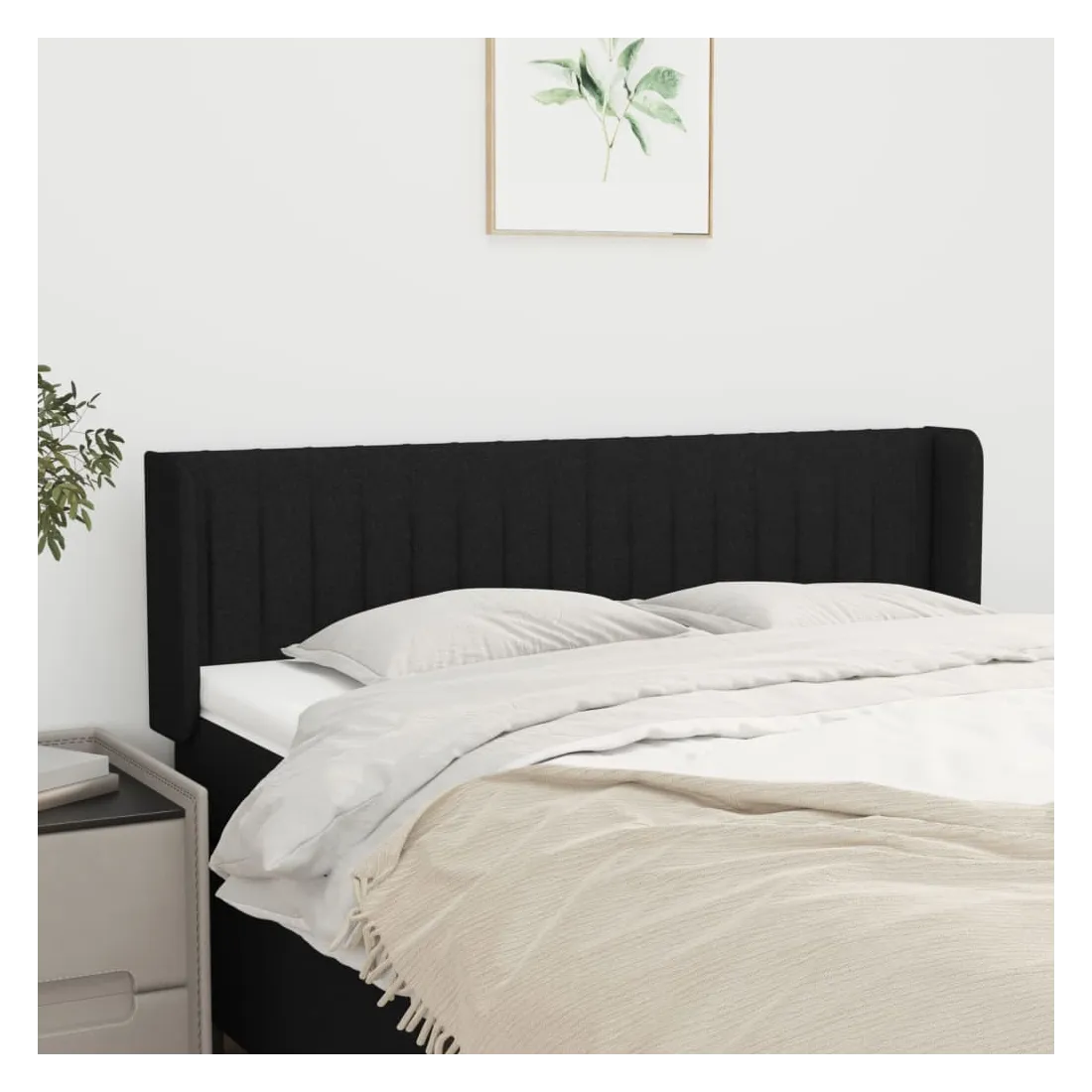 Tête de lit avec oreilles Noir 147x16x78/88 cm Tissu
