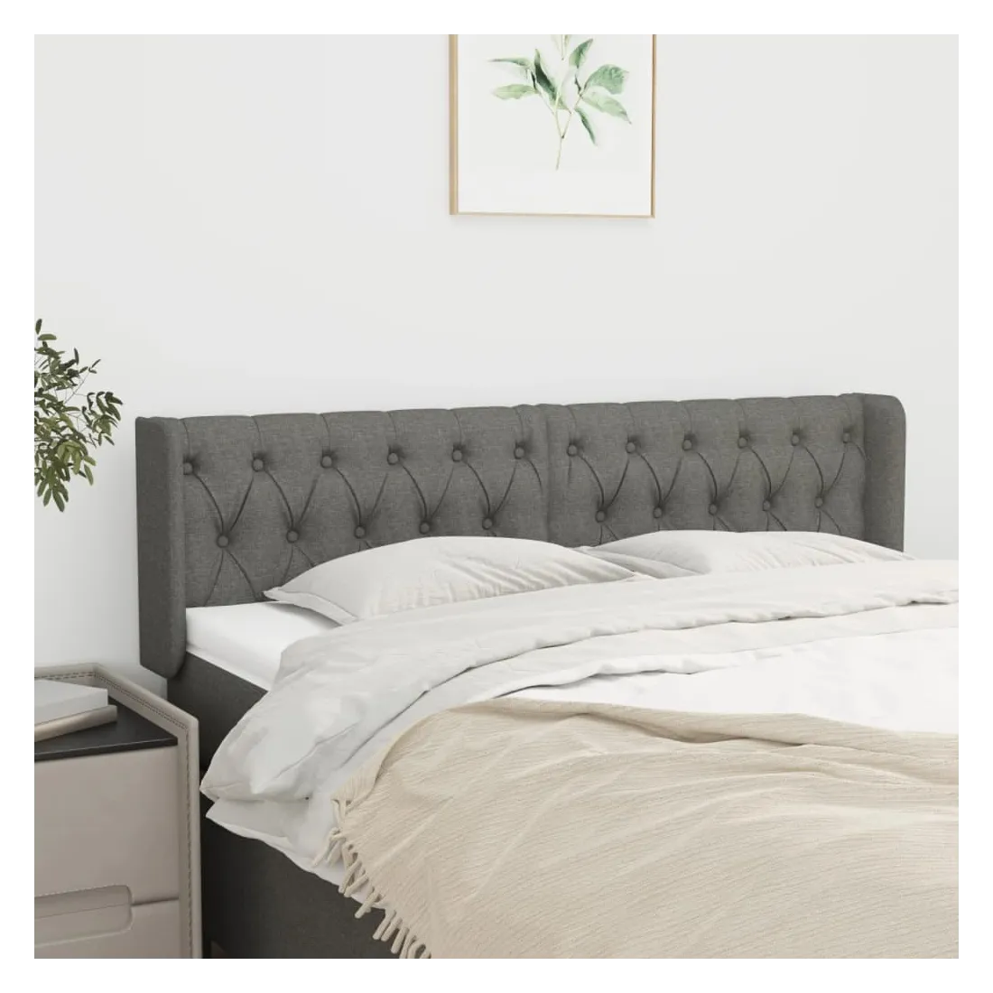 Cette tête de lit avec oreilles classique au design élégant donne à votre cadre de lit un aspect complet et convient à toute chambre à coucher. Tissu durable : le tissu présente un aspect simple et épuré, et il est respirant et durable.Pieds robustes et stables : les pieds en bois assurent la robustesse et la stabilité.Hauteur réglable : la tête de lit est réglable en hauteur selon vos préférences.Excellent soutien : la tête de lit vous offre un excellent soutien du dos lorsque vous êtes assis dans votre lit pour lire ou regarder la télévision. Remarque :La livraison comprend uniquement la tête de lit. Le cadre de lit et le matelas ne sont pas inclus. Vous pouvez consulter notre boutique pour les cadres et matelas assortis.Chaque produit est livré avec un manuel de montage dans la boîte pour un montage facile.