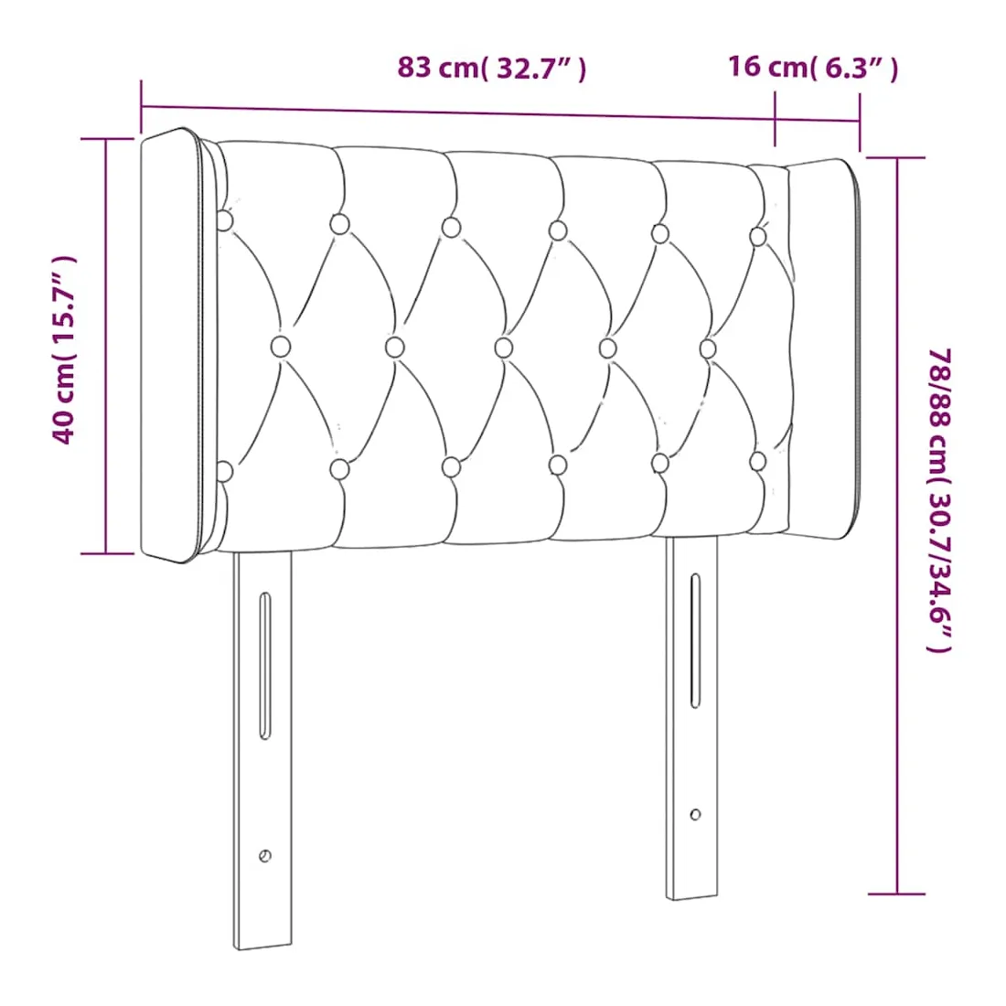 Cette tête de lit avec oreilles classique au design élégant donne à votre cadre de lit un aspect complet et convient à toute chambre à coucher. Velours doux : le velours est un tissu doux et luxueux qui se reconnaît à son tas dense de fibres uniformément coupées qui ont une touche lisse. Le tissu en velours présente un toucher doux distinctif, ce qui le rend confortable au toucher. Pieds robustes et stables : les pieds en bois assurent la robustesse et la stabilité. Hauteur réglable : la tête de lit est réglable en hauteur selon vos préférences. Excellent soutien : la tête de lit vous offre un excellent soutien du dos lorsque vous êtes assis dans votre lit pour lire ou regarder la télévision. Remarque : La livraison comprend uniquement la tête de lit. Le cadre de lit et le matelas ne s