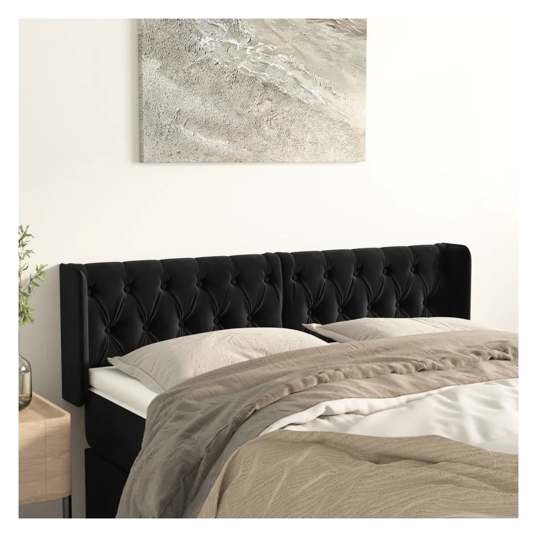 Tête de lit avec oreilles Noir 163x16x78/88 cm Velours