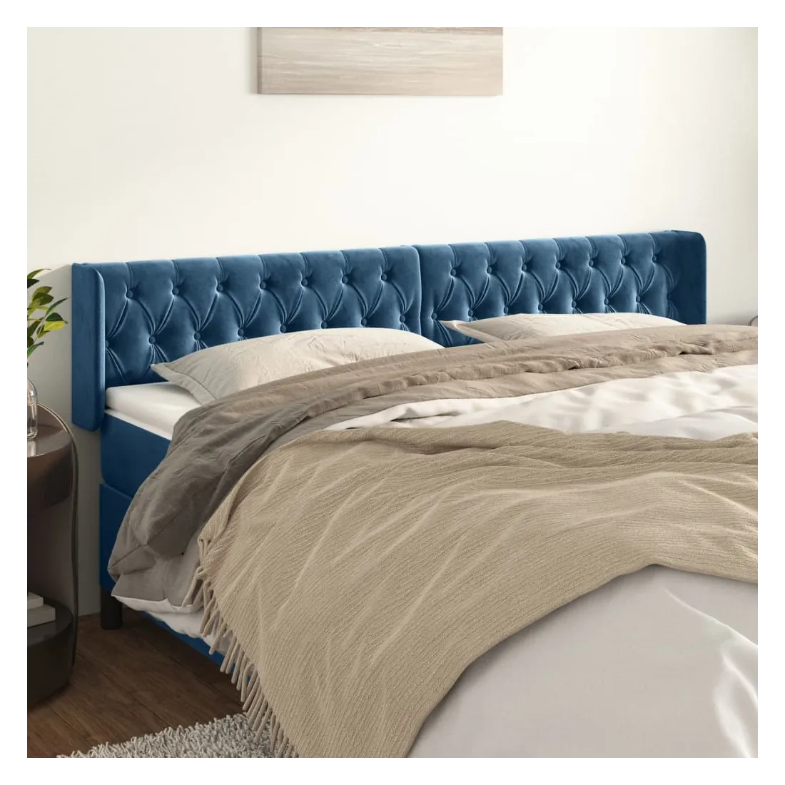 Tête de lit avec oreilles Bleu foncé 183x16x78/88 cm Velours