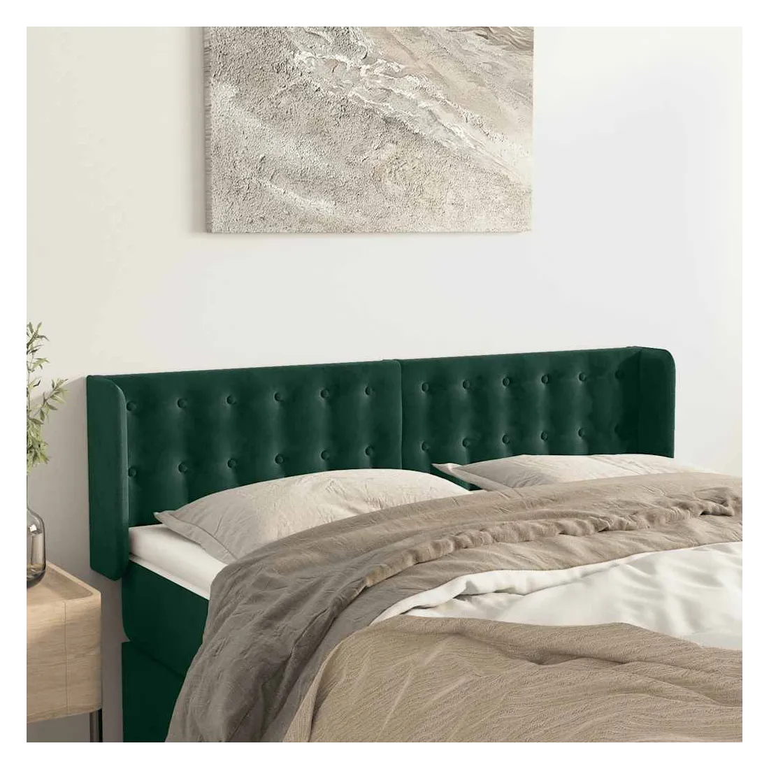 Tête de lit avec oreilles Vert foncé 147x16x78/88 cm Velours