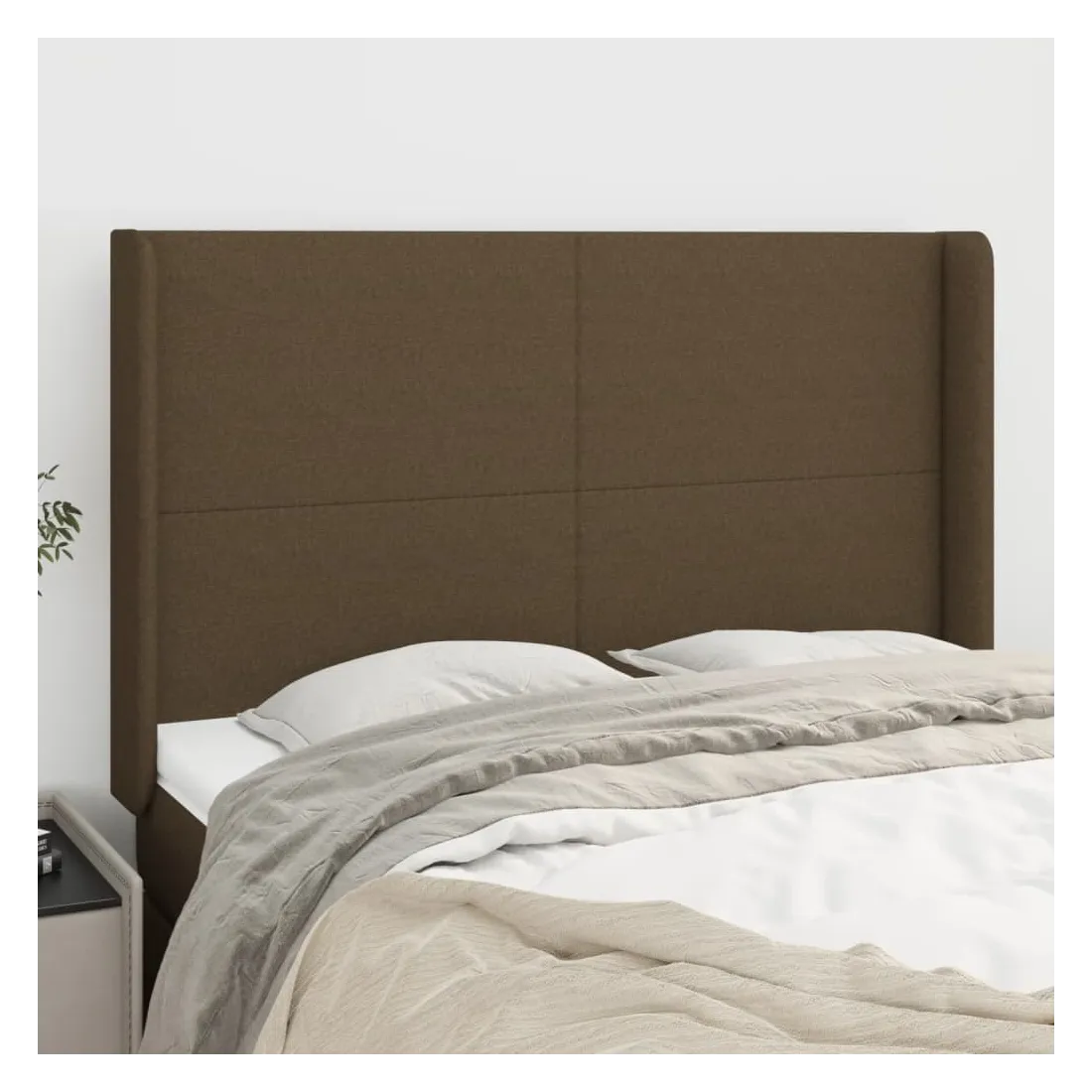 Tête de lit avec oreilles Marron foncé 147x16x118/128 cm Tissu