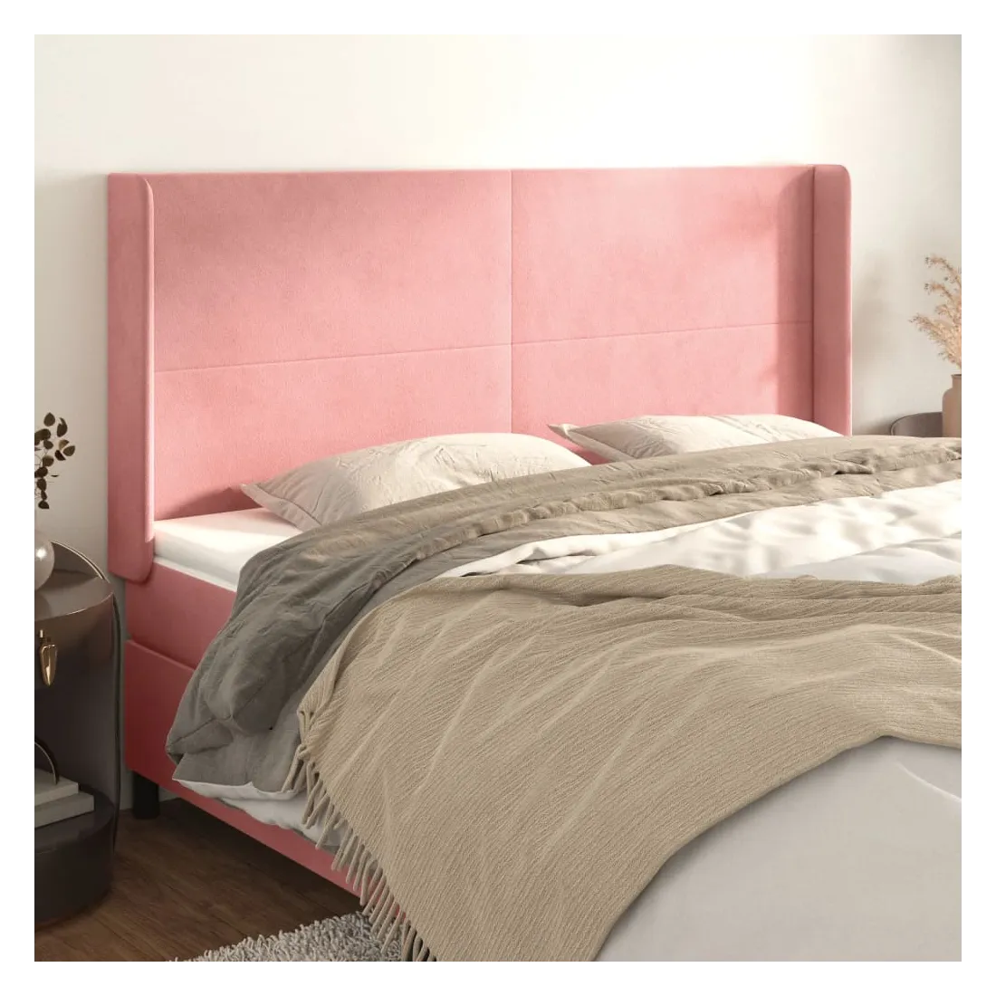 Tête de lit avec oreilles Rose 163x16x118/128 cm Velours