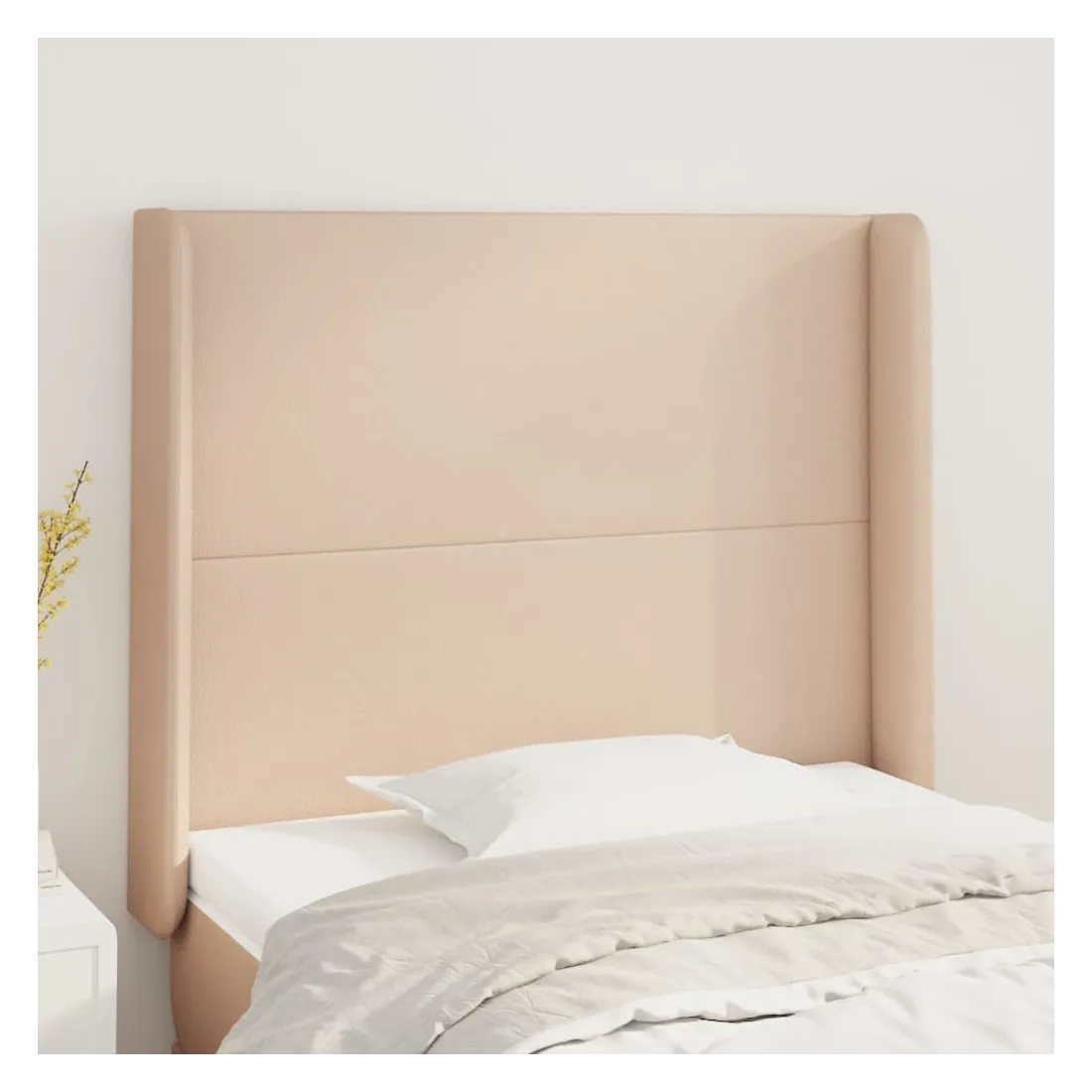 Cette tête de lit avec oreilles classique au design élégant donne à votre cadre de lit un aspect complet et convient à toute chambre à coucher. Similicuir durable : le similicuir de qualité supérieure est un matériau très durable. Il est résistant aux taches, ce qui le rend facile à nettoyer avec un chiffon humide. La surface lisse donne également un aspect luxueux et la beauté du cuir véritable.Pieds robustes et stables : les pieds en bois assurent la robustesse et la stabilité.Hauteur réglable : la tête de lit est réglable en hauteur selon vos préférences.Excellent soutien : la tête de lit vous offre un excellent soutien du dos lorsque vous êtes assis dans votre lit pour lire ou regarder la télévision. Remarque :La livraison comprend uniquement la tête de lit. Le cadre de lit et le matelas ne sont pas inclus. Vous pouvez consulter notre boutique pour les cadres et matelas assortis.Chaque produit est livré avec un manuel de montage dans la boîte pour un montage facile.
