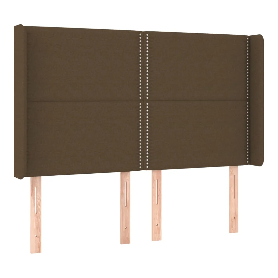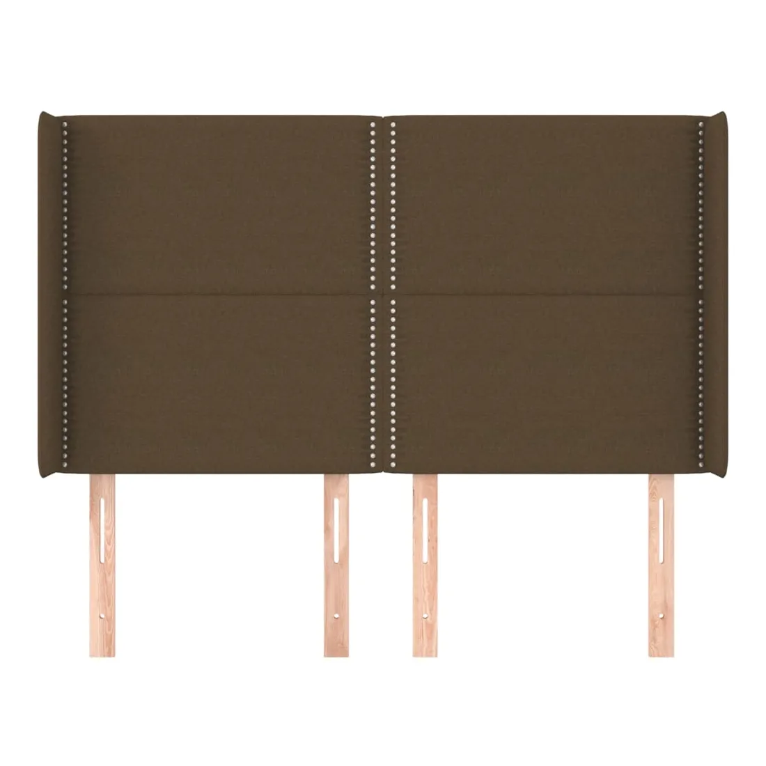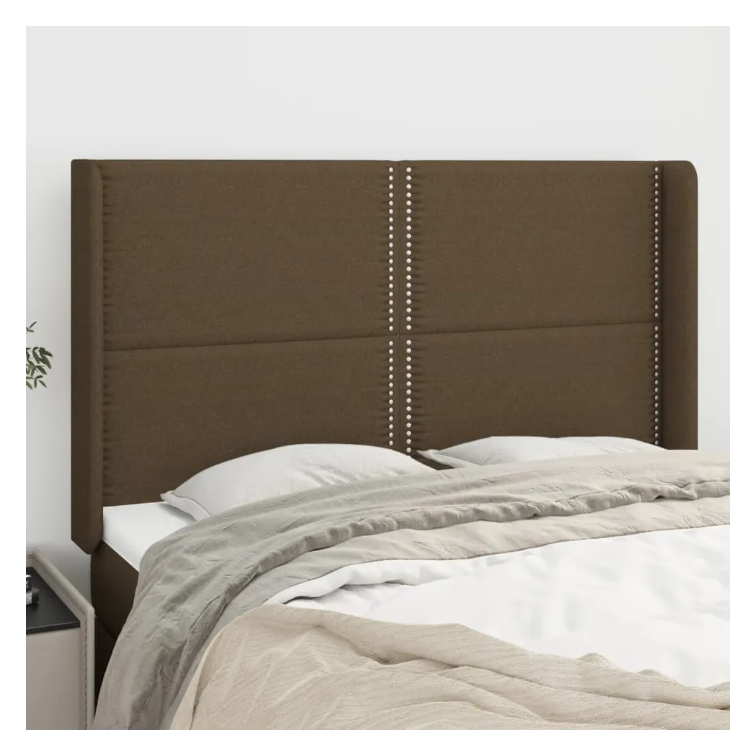 Tête de lit avec oreilles Marron foncé 147x16x118/128 cm Tissu