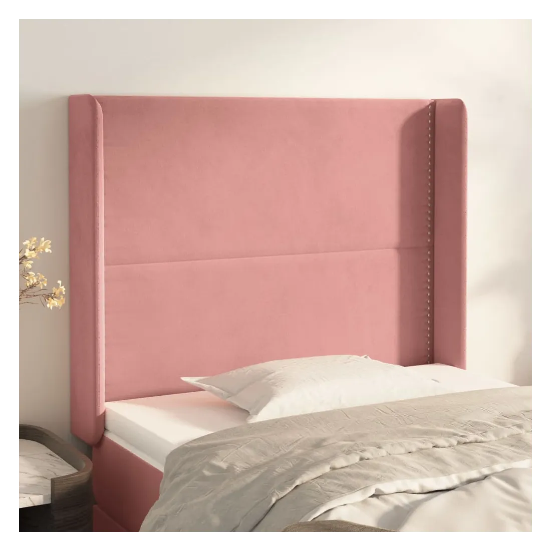 Cette tête de lit avec oreilles classique au design élégant donne à votre cadre de lit un aspect complet et convient à toute chambre à coucher. Velours doux : le velours est un tissu doux et luxueux qui se reconnaît à son tas dense de fibres uniformément coupées qui ont une touche lisse. Le tissu en velours présente un toucher doux distinctif, ce qui le rend confortable au toucher.Pieds robustes et stables : les pieds en bois assurent la robustesse et la stabilité.Hauteur réglable : la tête de lit est réglable en hauteur selon vos préférences.Excellent soutien : la tête de lit vous offre un excellent soutien du dos lorsque vous êtes assis dans votre lit pour lire ou regarder la télévision. Remarque :La livraison comprend uniquement la tête de lit. Le cadre de lit et le matelas ne sont pas inclus. Vous pouvez consulter notre boutique pour les cadres et matelas assortis.Chaque produit est livré avec un manuel de montage dans la boîte pour un montage facile.