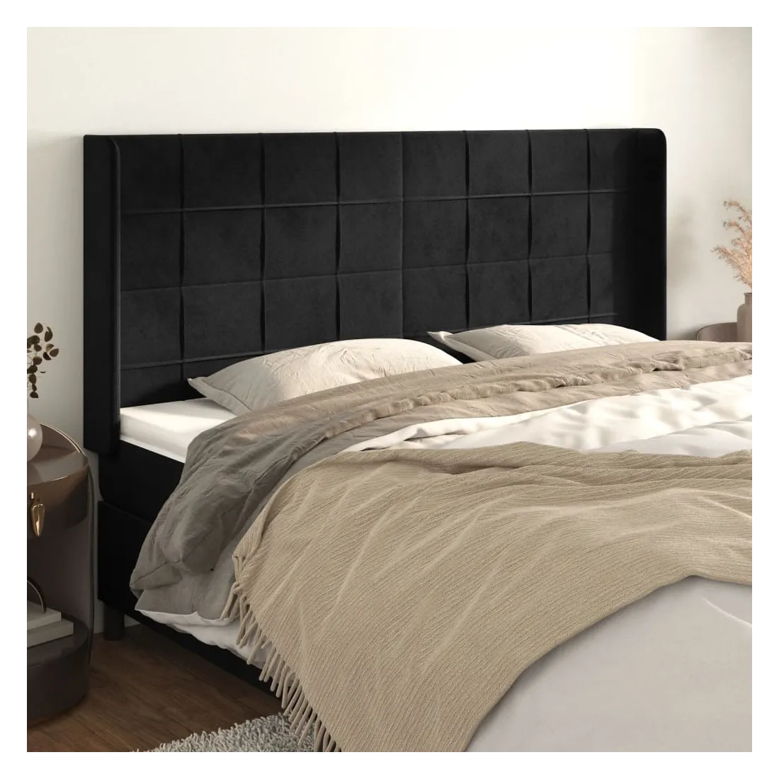 Tête de lit avec oreilles Noir 183x16x118/128 cm Velours