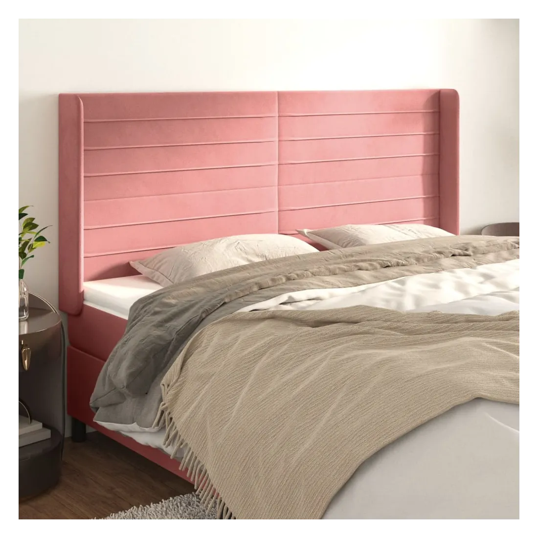 Tête de lit avec oreilles Rose 163x16x118/128 cm Velours
