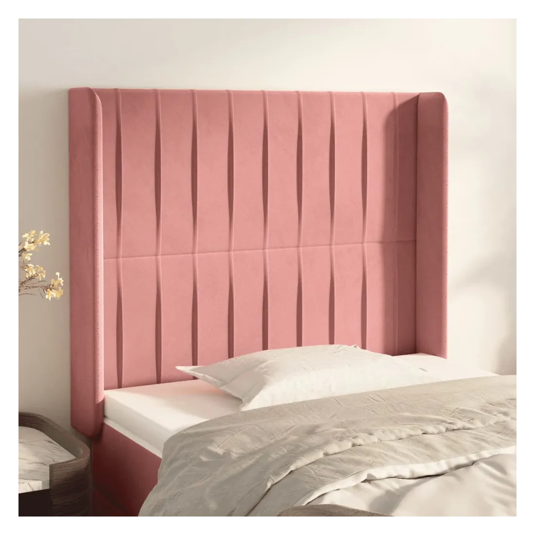 Tête de lit avec oreilles Rose 93x16x118/128 cm Velours