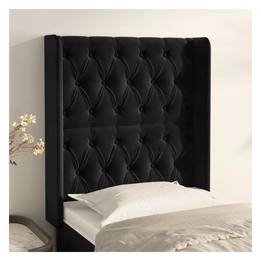 Tête de lit avec oreilles Noir 83x16x118/128 cm Velours