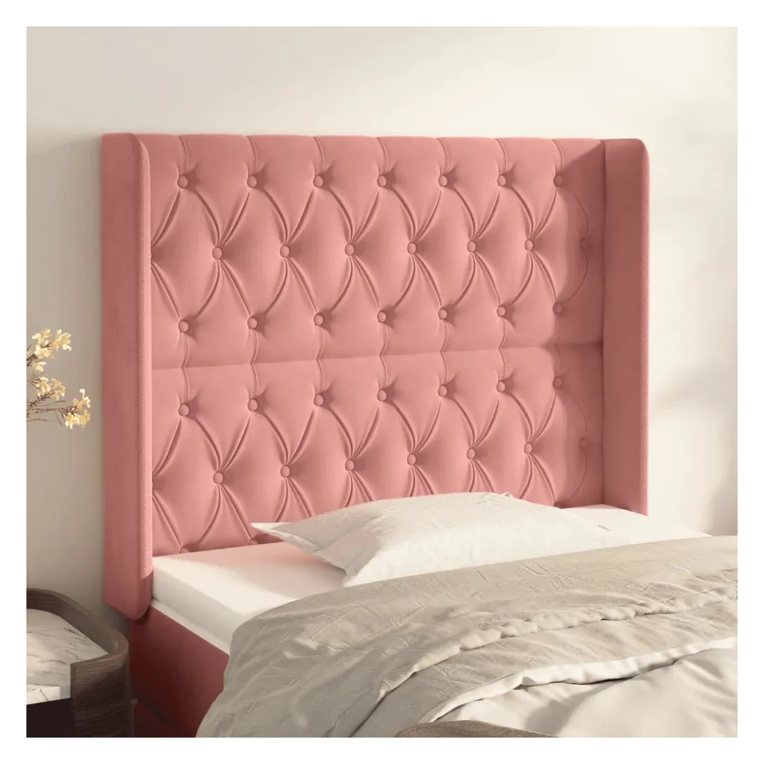 Cette tête de lit avec oreilles classique au design élégant donne à votre cadre de lit un aspect complet et convient à toute chambre à coucher. Velours doux : le velours est un tissu doux et luxueux qui se reconnaît à son tas dense de fibres uniformément coupées qui ont une touche lisse. Le tissu en velours présente un toucher doux distinctif, ce qui le rend confortable au toucher.Pieds robustes et stables : les pieds en bois assurent la robustesse et la stabilité.Hauteur réglable : la tête de lit est réglable en hauteur selon vos préférences.Excellent soutien : la tête de lit vous offre un excellent soutien du dos lorsque vous êtes assis dans votre lit pour lire ou regarder la télévision. Remarque :La livraison comprend uniquement la tête de lit. Le cadre de lit et le matelas ne sont pas inclus. Vous pouvez consulter notre boutique pour les cadres et matelas assortis.Chaque produit est livré avec un manuel de montage dans la boîte pour un montage facile.