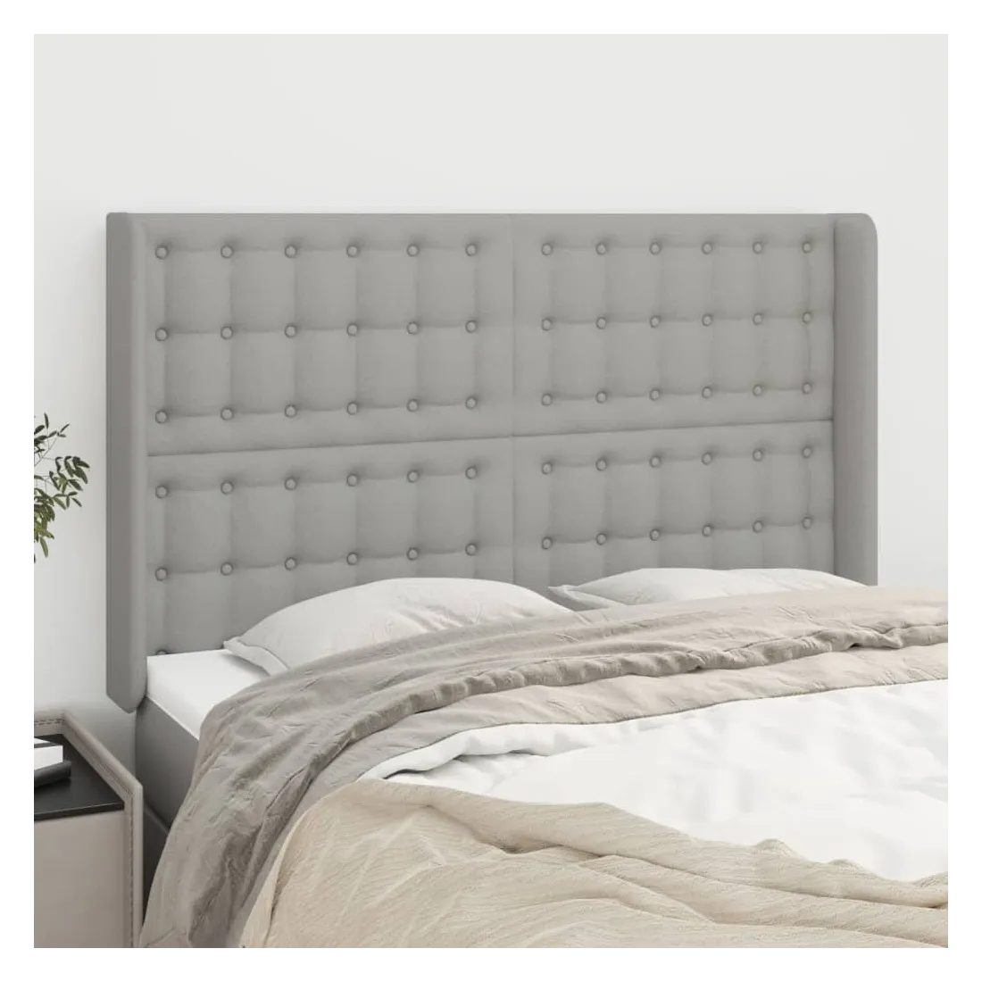 Tête de lit avec oreilles Gris clair 147x16x118/128 cm Tissu