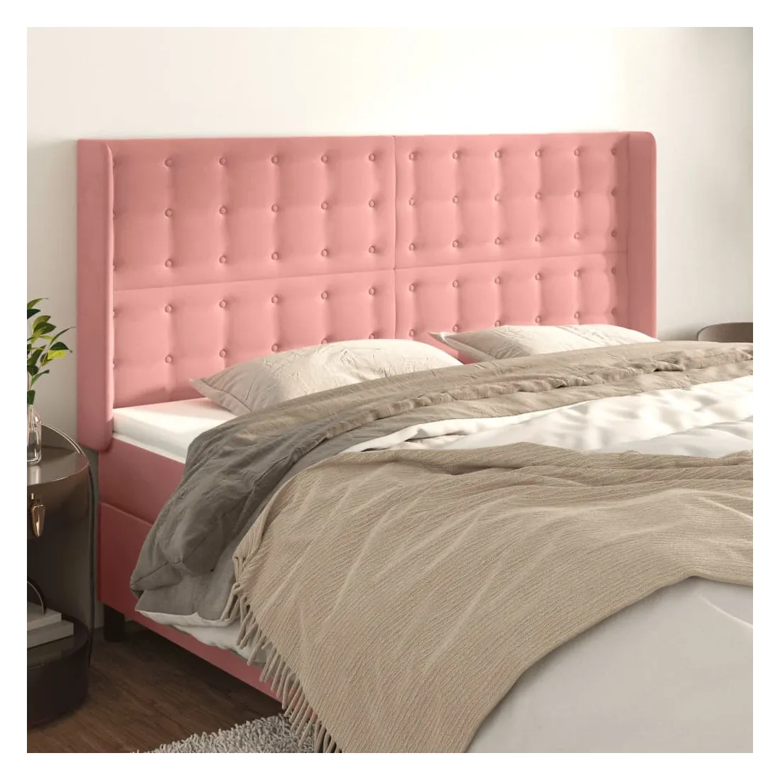 Tête de lit avec oreilles Rose 183x16x118/128 cm Velours
