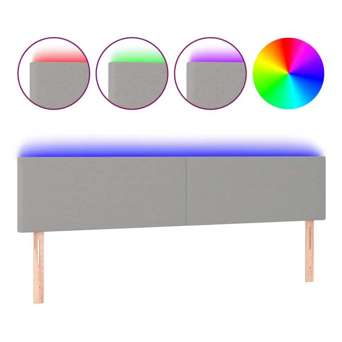 Cette tête de lit à LED classique, au design élégant, donne à votre cadre de lit une touche de modernité étonnante et convient parfaitement à toute chambre à coucher. Tissu durable : le tissu présente un aspect simple et épuré, et il est respirant et durable. LED colorée : apportez de l'éclairage dans l'obscurité avec des lumières LED colorées ! Hauteur réglable : la tête de lit est réglable en hauteur selon vos préférences. Excellent soutien : la tête de lit vous offre un excellent soutien du dos lorsque vous êtes assis dans votre lit pour lire ou regarder la télévision. Bande à LED découpable : cette bande à LED flexible peut être ajustée en longueur. Le symbole des ciseaux indique où la bande peut être coupée en toute sécurité sans l'endommager. Remarque : Seule la partie avec un sy