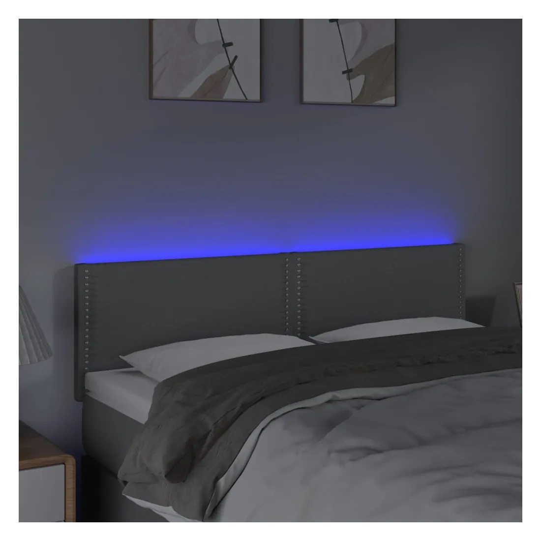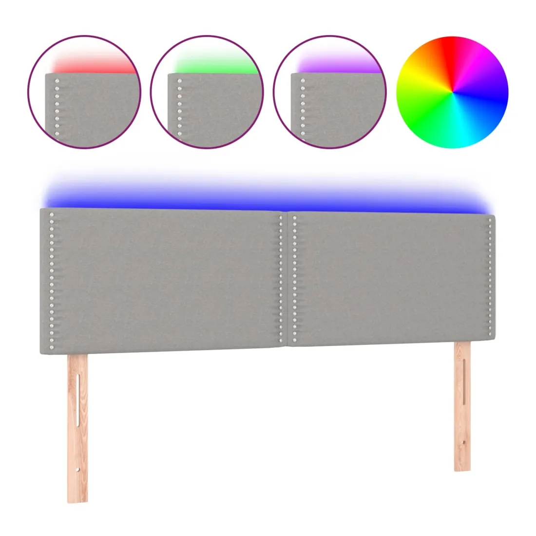 Cette tête de lit à LED classique, au design élégant, donne à votre cadre de lit une touche de modernité étonnante et convient parfaitement à toute chambre à coucher. Tissu durable : le tissu présente un aspect simple et épuré, et il est respirant et durable. LED colorée : apportez de l'éclairage dans l'obscurité avec des lumières LED colorées ! Hauteur réglable : la tête de lit est réglable en hauteur selon vos préférences. Excellent soutien : la tête de lit vous offre un excellent soutien du dos lorsque vous êtes assis dans votre lit pour lire ou regarder la télévision. Bande à LED découpable : cette bande à LED flexible peut être ajustée en longueur. Le symbole des ciseaux indique où la bande peut être coupée en toute sécurité sans l'endommager. Remarque : Seule la partie avec un sy