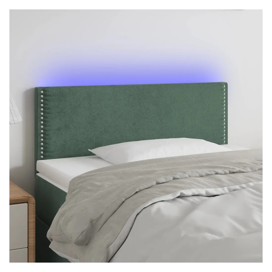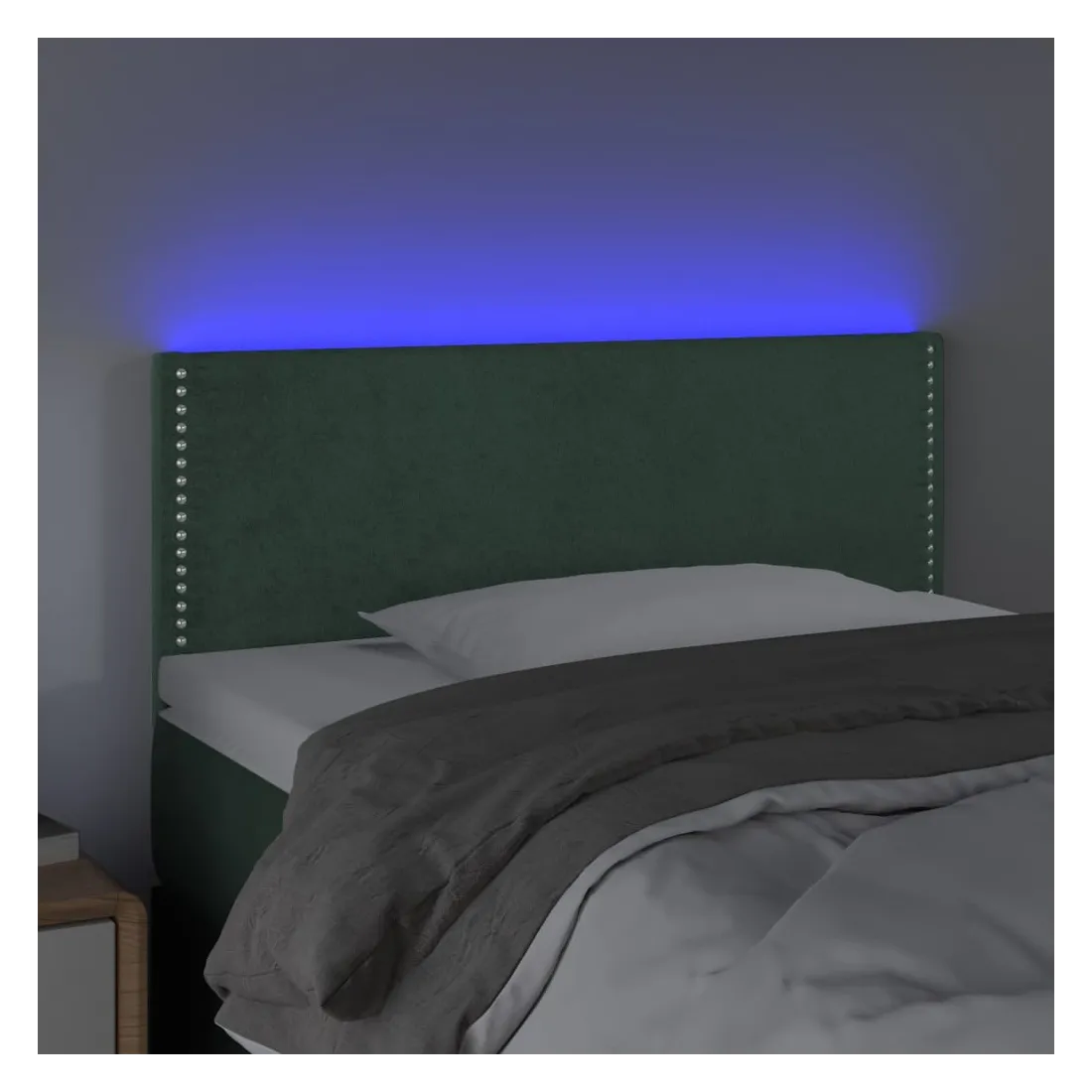 Cette tête de lit à LED classique, au design élégant, donne à votre cadre de lit une touche de modernité étonnante et convient parfaitement à toute chambre à coucher. Velours doux : le velours est un tissu doux et luxueux qui se reconnaît à son tas dense de fibres uniformément coupées qui ont une touche lisse. Le tissu en velours présente un toucher doux distinctif, ce qui le rend confortable au toucher.LED colorée : apportez de l'éclairage dans l'obscurité avec des lumières LED colorées !Hauteur réglable : la tête de lit est réglable en hauteur selon vos préférences.Excellent soutien : la tête de lit vous offre un excellent soutien du dos lorsque vous êtes assis dans votre lit pour lire ou regarder la télévision.Bande à LED découpable : cette bande à LED flexible peut être ajustée en longueur. Le symbole des ciseaux indique où la bande peut être coupée en toute sécurité sans l'endommager. Remarque :Seule la partie avec un symbole de ciseaux peut être coupée et seule la partie avec l'USB continuera à fonctionner comme avant.Chaque produit est livré avec un manuel de montage dans la boîte pour un montage facile.Ce produit est doté d'un connecteur USB, mais la source d'alimentation certifiée de USB 5V n'est pas incluse.