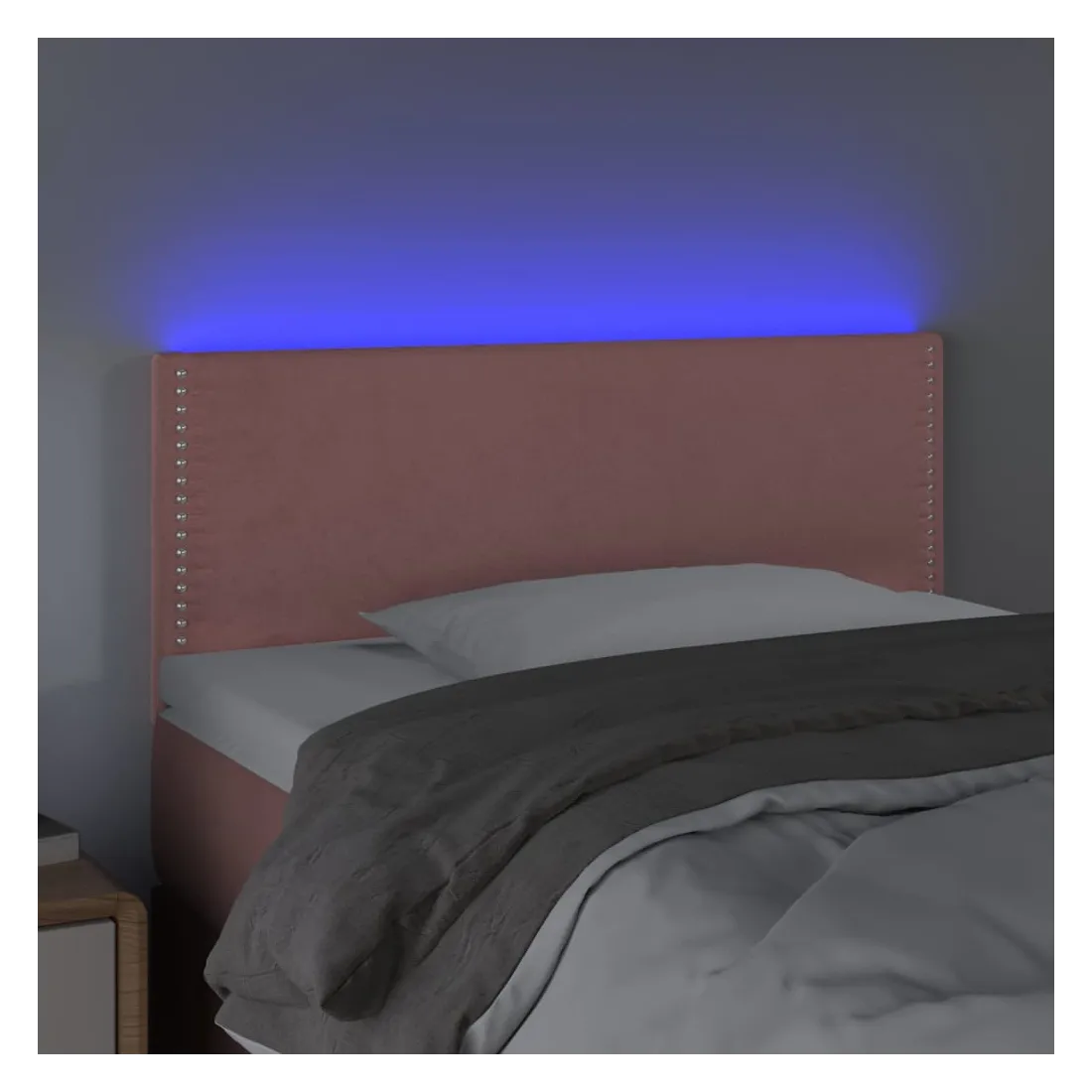 Cette tête de lit à LED classique, au design élégant, donne à votre cadre de lit une touche de modernité étonnante et convient parfaitement à toute chambre à coucher. Velours doux : le velours est un tissu doux et luxueux qui se reconnaît à son tas dense de fibres uniformément coupées qui ont une touche lisse. Le tissu en velours présente un toucher doux distinctif, ce qui le rend confortable au toucher.LED colorée : apportez de l'éclairage dans l'obscurité avec des lumières LED colorées !Hauteur réglable : la tête de lit est réglable en hauteur selon vos préférences.Excellent soutien : la tête de lit vous offre un excellent soutien du dos lorsque vous êtes assis dans votre lit pour lire ou regarder la télévision.Bande à LED découpable : cette bande à LED flexible peut être ajustée en longueur. Le symbole des ciseaux indique où la bande peut être coupée en toute sécurité sans l'endommager. Remarque :Seule la partie avec un symbole de ciseaux peut être coupée et seule la partie avec l'USB continuera à fonctionner comme avant.Chaque produit est livré avec un manuel de montage dans la boîte pour un montage facile.Ce produit est doté d'un connecteur USB, mais la source d'alimentation certifiée de USB 5V n'est pas incluse.