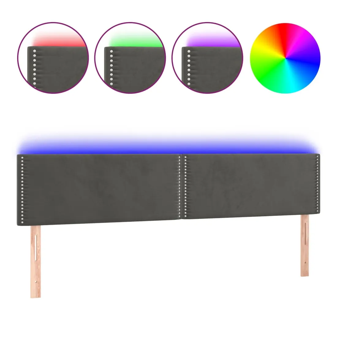 Cette tête de lit à LED classique, au design élégant, donne à votre cadre de lit une touche de modernité étonnante et convient parfaitement à toute chambre à coucher. Velours doux : le velours est un tissu doux et luxueux qui se reconnaît à son tas dense de fibres uniformément coupées qui ont une touche lisse. Le tissu en velours présente un toucher doux distinctif, ce qui le rend confortable au toucher. LED colorée : apportez de l'éclairage dans l'obscurité avec des lumières LED colorées ! Hauteur réglable : la tête de lit est réglable en hauteur selon vos préférences. Excellent soutien : la tête de lit vous offre un excellent soutien du dos lorsque vous êtes assis dans votre lit pour lire ou regarder la télévision. Bande à LED découpable : cette bande à LED flexible peut être ajustée