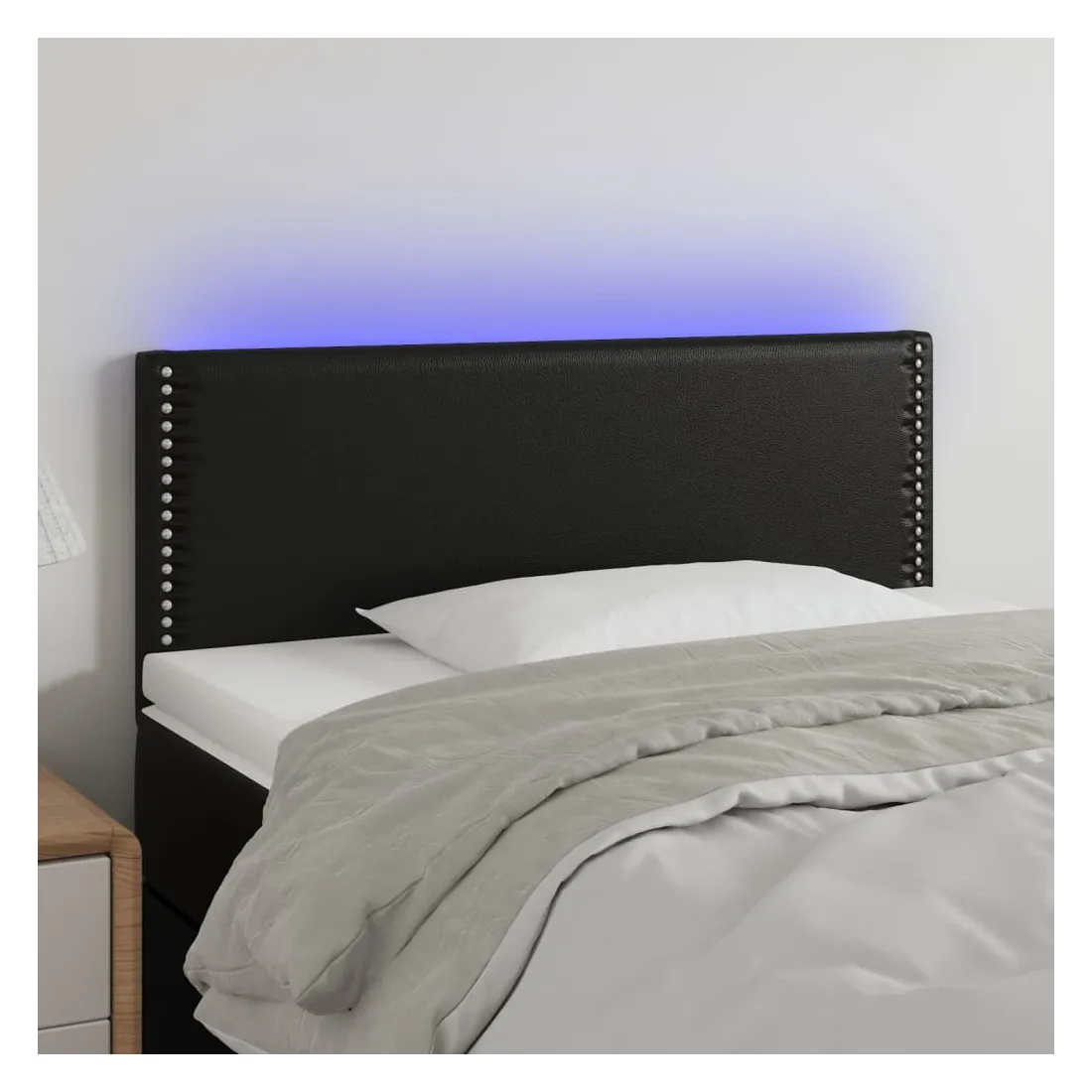 Cette tête de lit à LED classique, au design élégant, donne à votre cadre de lit une touche de modernité étonnante et convient parfaitement à toute chambre à coucher. Similicuir durable : le similicuir de qualité supérieure est un matériau très durable. Il est résistant aux taches, ce qui le rend facile à nettoyer avec un chiffon humide. La surface lisse donne également un aspect luxueux et la beauté du cuir véritable.LED colorée : apportez de l'éclairage dans l'obscurité avec des lumières LED colorées !Hauteur réglable : la tête de lit est réglable en hauteur selon vos préférences.Excellent soutien : la tête de lit vous offre un excellent soutien du dos lorsque vous êtes assis dans votre lit pour lire ou regarder la télévision.Bande à LED découpable : cette bande à LED flexible peut être ajustée en longueur. Le symbole des ciseaux indique où la bande peut être coupée en toute sécurité sans l'endommager. Remarque :Seule la partie avec un symbole de ciseaux peut être coupée et seule la partie avec l'USB continuera à fonctionner comme avant.Chaque produit est livré avec un manuel de montage dans la boîte pour un montage facile.Ce produit est doté d'un connecteur USB, mais la source d'alimentation certifiée de USB 5V n'est pas incluse.