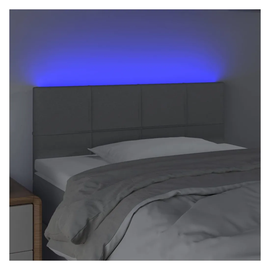 Cette tête de lit à LED classique, au design élégant, donne à votre cadre de lit une touche de modernité étonnante et convient parfaitement à toute chambre à coucher. Tissu durable : le tissu présente un aspect simple et épuré, et il est respirant et durable. LED colorée : apportez de l'éclairage dans l'obscurité avec des lumières LED colorées ! Hauteur réglable : la tête de lit est réglable en hauteur selon vos préférences. Excellent soutien : la tête de lit vous offre un excellent soutien du dos lorsque vous êtes assis dans votre lit pour lire ou regarder la télévision. Bande à LED découpable : cette bande à LED flexible peut être ajustée en longueur. Le symbole des ciseaux indique où la bande peut être coupée en toute sécurité sans l'endommager. Remarque : Seule la partie avec un sy