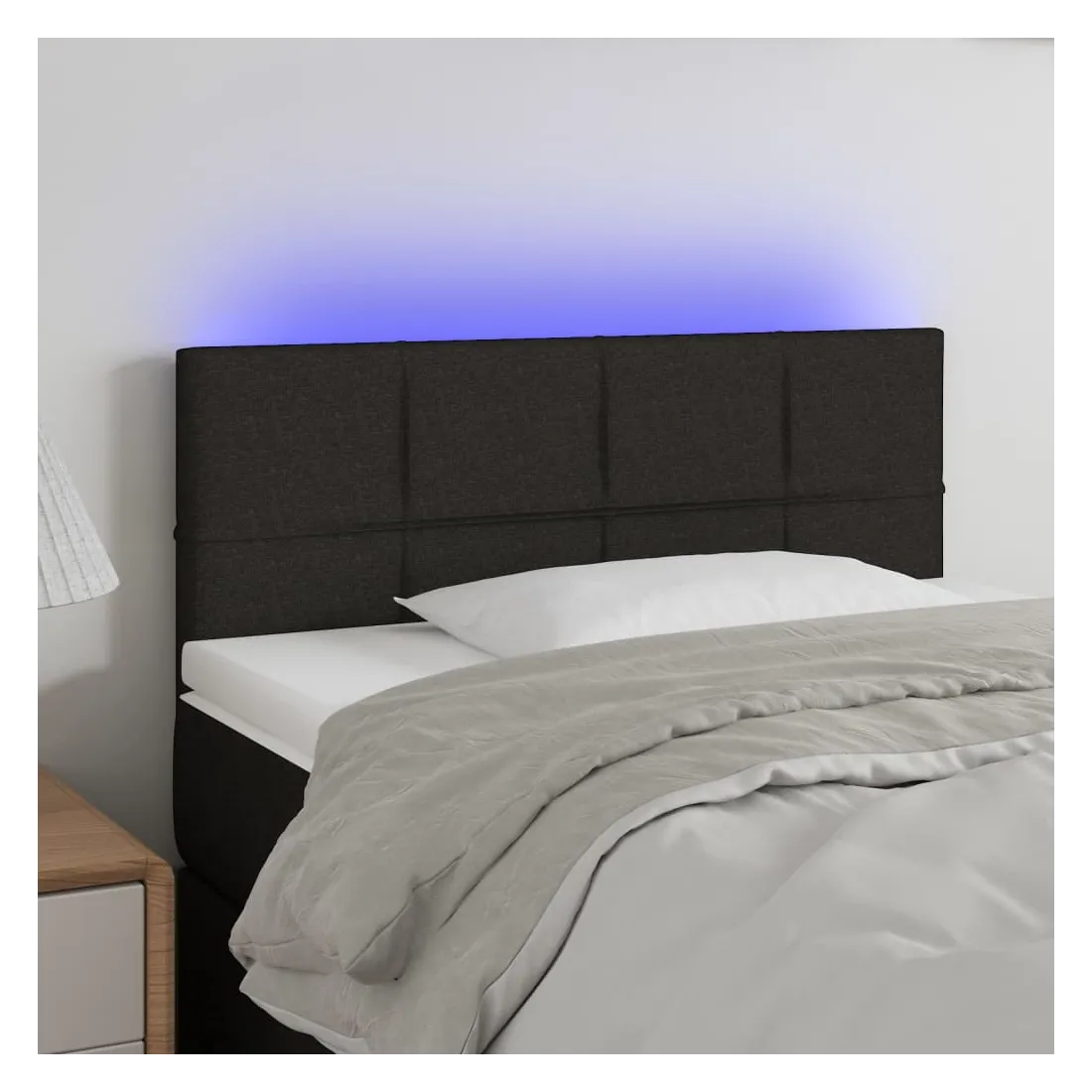 Cette tête de lit à LED classique, au design élégant, donne à votre cadre de lit une touche de modernité étonnante et convient parfaitement à toute chambre à coucher. Tissu durable : le tissu présente un aspect simple et épuré, et il est respirant et durable. LED colorée : apportez de l'éclairage dans l'obscurité avec des lumières LED colorées ! Hauteur réglable : la tête de lit est réglable en hauteur selon vos préférences. Excellent soutien : la tête de lit vous offre un excellent soutien du dos lorsque vous êtes assis dans votre lit pour lire ou regarder la télévision. Bande à LED découpable : cette bande à LED flexible peut être ajustée en longueur. Le symbole des ciseaux indique où la bande peut être coupée en toute sécurité sans l'endommager. Remarque : Seule la partie avec un sy