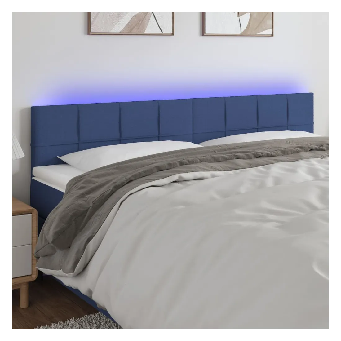 Cette tête de lit à LED classique, au design élégant, donne à votre cadre de lit une touche de modernité étonnante et convient parfaitement à toute chambre à coucher. Tissu durable : le tissu présente un aspect simple et épuré, et il est respirant et durable.LED colorée : apportez de l'éclairage dans l'obscurité avec des lumières LED colorées !Hauteur réglable : la tête de lit est réglable en hauteur selon vos préférences.Excellent soutien : la tête de lit vous offre un excellent soutien du dos lorsque vous êtes assis dans votre lit pour lire ou regarder la télévision.Bande à LED découpable : cette bande à LED flexible peut être ajustée en longueur. Le symbole des ciseaux indique où la bande peut être coupée en toute sécurité sans l'endommager. Remarque :Seule la partie avec un symbole de ciseaux peut être coupée et seule la partie avec l'USB continuera à fonctionner comme avant.Chaque produit est livré avec un manuel de montage dans la boîte pour un montage facile.Ce produit est doté d'un connecteur USB, mais la source d'alimentation certifiée de USB 5V n'est pas incluse.