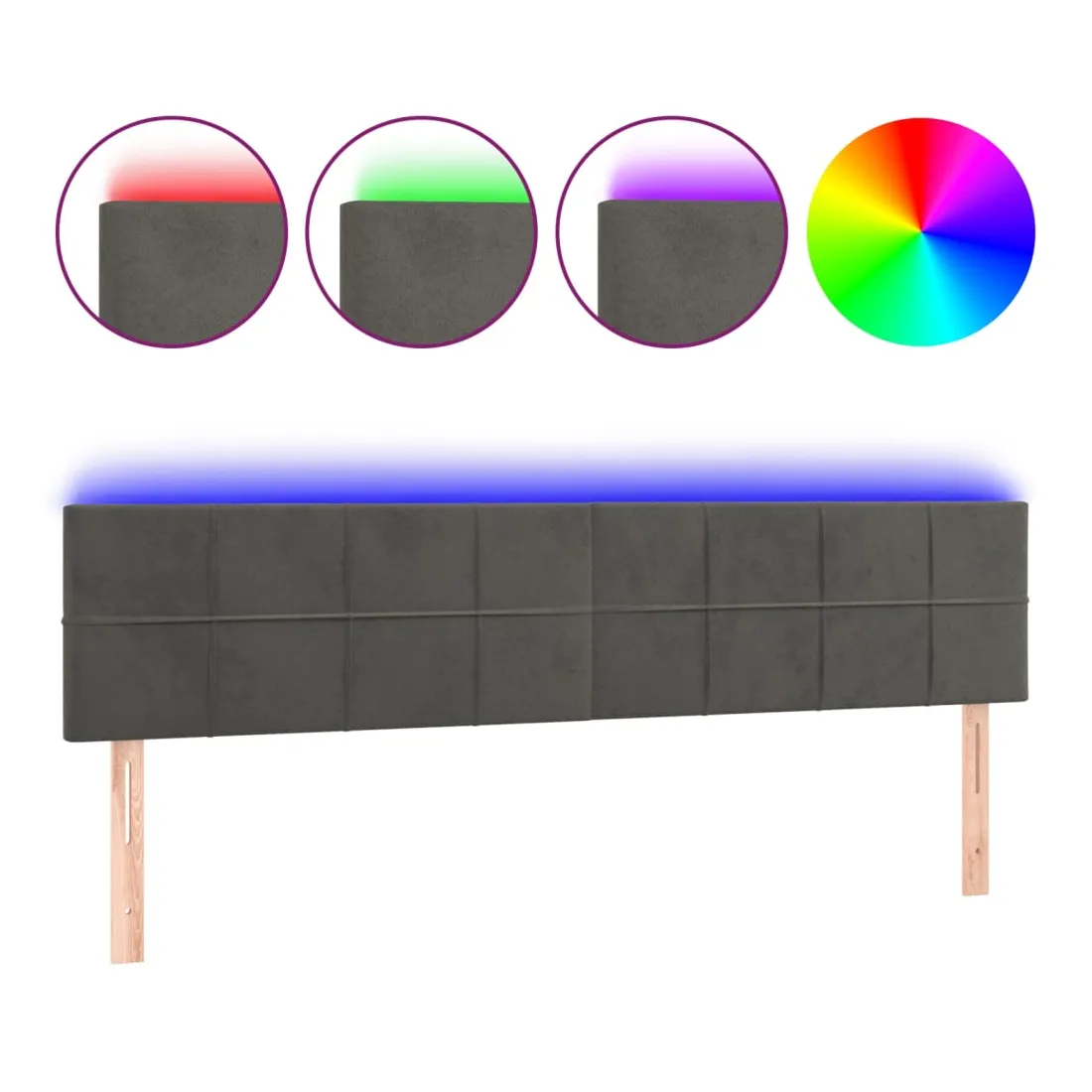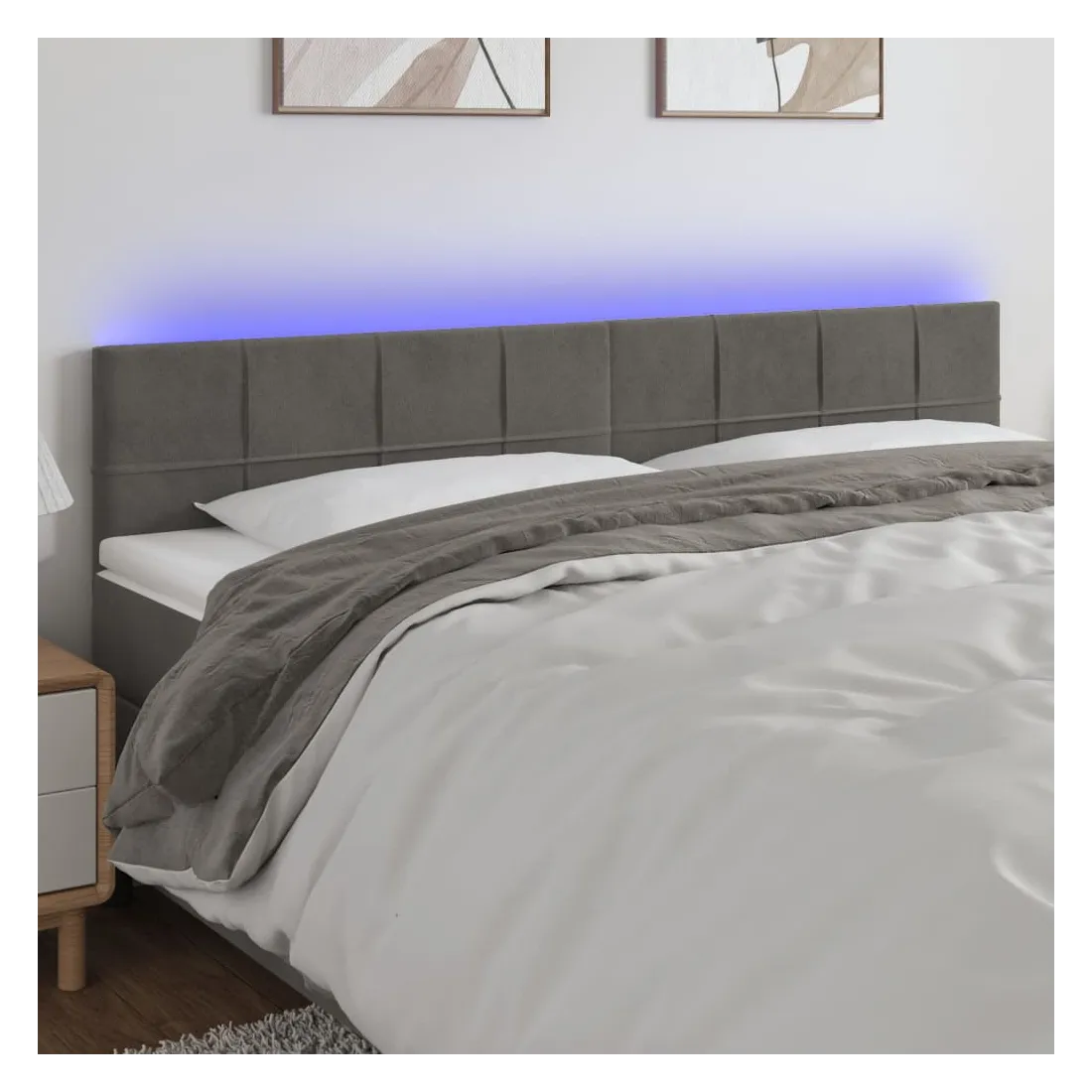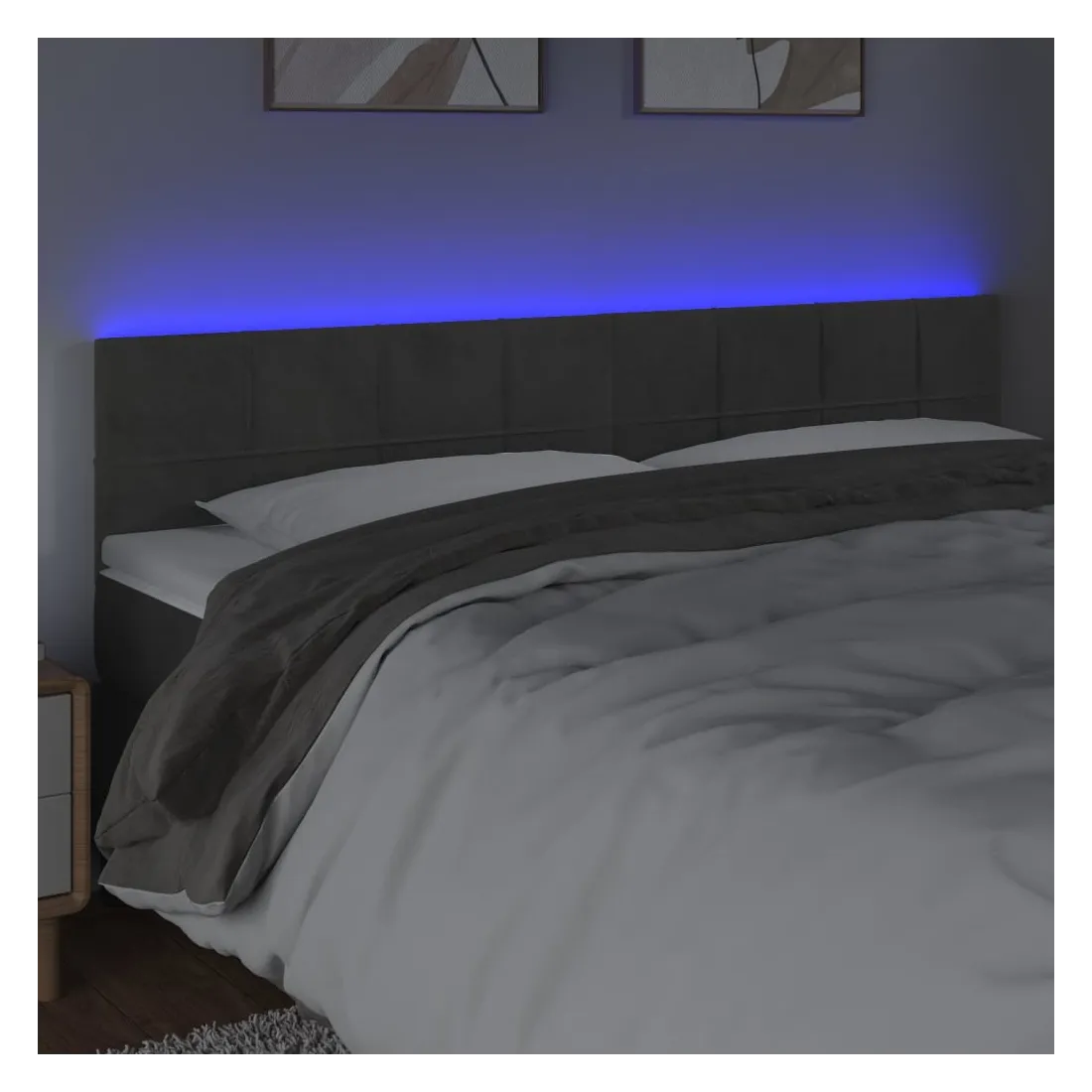 Cette tête de lit à LED classique, au design élégant, donne à votre cadre de lit une touche de modernité étonnante et convient parfaitement à toute chambre à coucher. Velours doux : le velours est un tissu doux et luxueux qui se reconnaît à son tas dense de fibres uniformément coupées qui ont une touche lisse. Le tissu en velours présente un toucher doux distinctif, ce qui le rend confortable au toucher.LED colorée : apportez de l'éclairage dans l'obscurité avec des lumières LED colorées !Hauteur réglable : la tête de lit est réglable en hauteur selon vos préférences.Excellent soutien : la tête de lit vous offre un excellent soutien du dos lorsque vous êtes assis dans votre lit pour lire ou regarder la télévision.Bande à LED découpable : cette bande à LED flexible peut être ajustée en longueur. Le symbole des ciseaux indique où la bande peut être coupée en toute sécurité sans l'endommager. Remarque :Seule la partie avec un symbole de ciseaux peut être coupée et seule la partie avec l'USB continuera à fonctionner comme avant.Chaque produit est livré avec un manuel de montage dans la boîte pour un montage facile.Ce produit est doté d'un connecteur USB, mais la source d'alimentation certifiée de USB 5V n'est pas incluse.