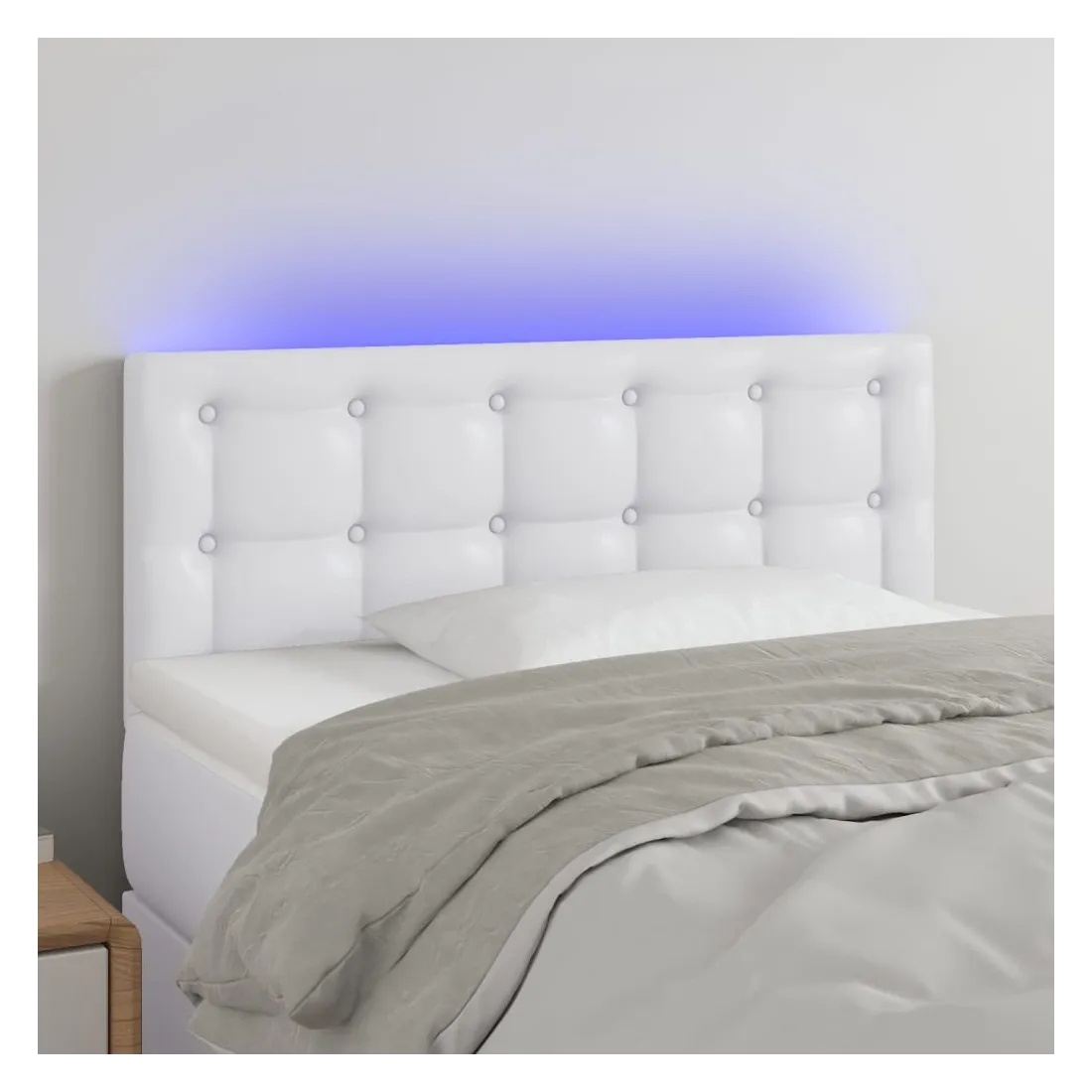 Cette tête de lit à LED classique, au design élégant, donne à votre cadre de lit une touche de modernité étonnante et convient parfaitement à toute chambre à coucher. Similicuir durable : le similicuir de qualité supérieure est un matériau très durable. Il est résistant aux taches, ce qui le rend facile à nettoyer avec un chiffon humide. La surface lisse donne également un aspect luxueux et la beauté du cuir véritable.LED colorée : apportez de l'éclairage dans l'obscurité avec des lumières LED colorées !Hauteur réglable : la tête de lit est réglable en hauteur selon vos préférences.Excellent soutien : la tête de lit vous offre un excellent soutien du dos lorsque vous êtes assis dans votre lit pour lire ou regarder la télévision.Bande à LED découpable : cette bande à LED flexible peut être ajustée en longueur. Le symbole des ciseaux indique où la bande peut être coupée en toute sécurité sans l'endommager. Remarque :Seule la partie avec un symbole de ciseaux peut être coupée et seule la partie avec l'USB continuera à fonctionner comme avant.Chaque produit est livré avec un manuel de montage dans la boîte pour un montage facile.Ce produit est doté d'un connecteur USB, mais la source d'alimentation certifiée de USB 5V n'est pas incluse.