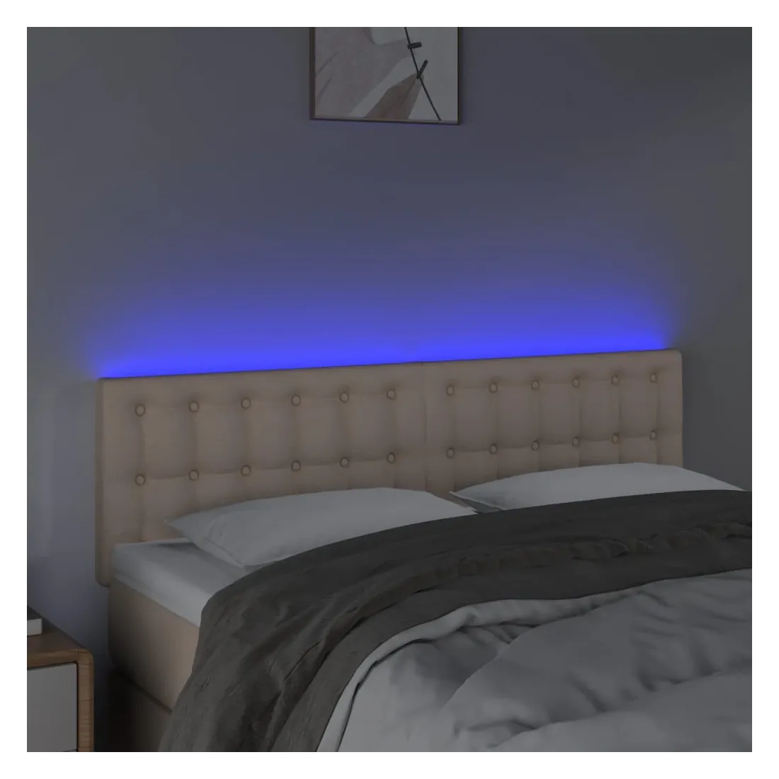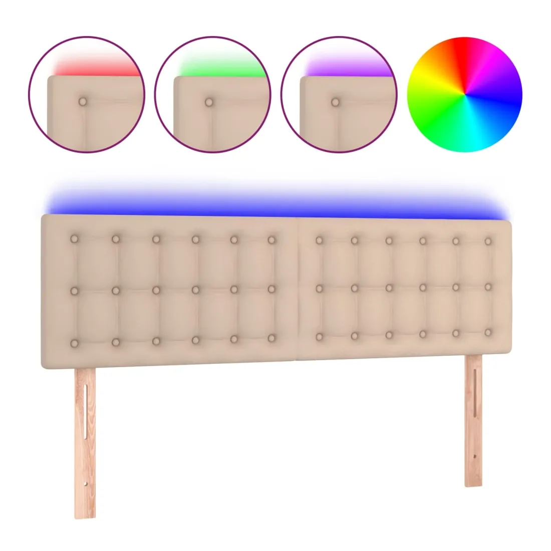 Cette tête de lit à LED classique, au design élégant, donne à votre cadre de lit une touche de modernité étonnante et convient parfaitement à toute chambre à coucher. Similicuir durable : le similicuir de qualité supérieure est un matériau très durable. Il est résistant aux taches, ce qui le rend facile à nettoyer avec un chiffon humide. La surface lisse donne également un aspect luxueux et la beauté du cuir véritable.LED colorée : apportez de l'éclairage dans l'obscurité avec des lumières LED colorées !Hauteur réglable : la tête de lit est réglable en hauteur selon vos préférences.Excellent soutien : la tête de lit vous offre un excellent soutien du dos lorsque vous êtes assis dans votre lit pour lire ou regarder la télévision.Bande à LED découpable : cette bande à LED flexible peut être ajustée en longueur. Le symbole des ciseaux indique où la bande peut être coupée en toute sécurité sans l'endommager. Remarque :Seule la partie avec un symbole de ciseaux peut être coupée et seule la partie avec l'USB continuera à fonctionner comme avant.Chaque produit est livré avec un manuel de montage dans la boîte pour un montage facile.Ce produit est doté d'un connecteur USB, mais la source d'alimentation certifiée de USB 5V n'est pas incluse.