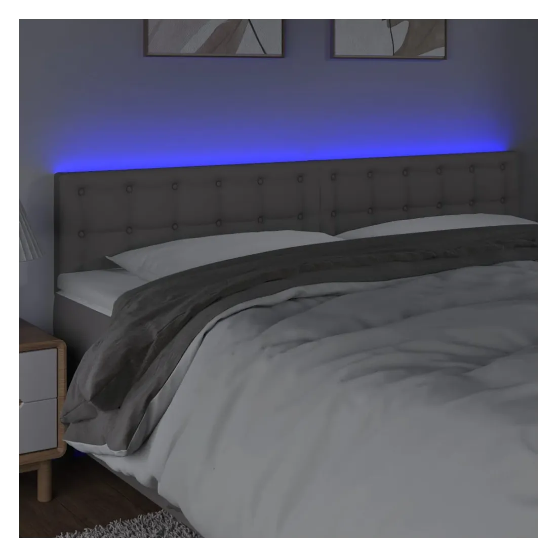 Cette tête de lit à LED classique, au design élégant, donne à votre cadre de lit une touche de modernité étonnante et convient parfaitement à toute chambre à coucher. Similicuir durable : le similicuir de qualité supérieure est un matériau très durable. Il est résistant aux taches, ce qui le rend facile à nettoyer avec un chiffon humide. La surface lisse donne également un aspect luxueux et la beauté du cuir véritable.LED colorée : apportez de l'éclairage dans l'obscurité avec des lumières LED colorées !Hauteur réglable : la tête de lit est réglable en hauteur selon vos préférences.Excellent soutien : la tête de lit vous offre un excellent soutien du dos lorsque vous êtes assis dans votre lit pour lire ou regarder la télévision.Bande à LED découpable : cette bande à LED flexible peut être ajustée en longueur. Le symbole des ciseaux indique où la bande peut être coupée en toute sécurité sans l'endommager. Remarque :Seule la partie avec un symbole de ciseaux peut être coupée et seule la partie avec l'USB continuera à fonctionner comme avant.Chaque produit est livré avec un manuel de montage dans la boîte pour un montage facile.Ce produit est doté d'un connecteur USB, mais la source d'alimentation certifiée de USB 5V n'est pas incluse.