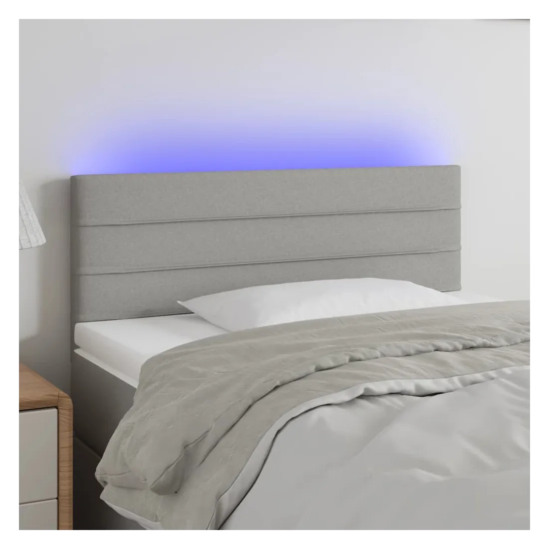 Cette tête de lit à LED classique, au design élégant, donne à votre cadre de lit une touche de modernité étonnante et convient parfaitement à toute chambre à coucher. Tissu durable : le tissu présente un aspect simple et épuré, et il est respirant et durable.LED colorée : apportez de l'éclairage dans l'obscurité avec des lumières LED colorées !Hauteur réglable : la tête de lit est réglable en hauteur selon vos préférences.Excellent soutien : la tête de lit vous offre un excellent soutien du dos lorsque vous êtes assis dans votre lit pour lire ou regarder la télévision.Bande à LED découpable : cette bande à LED flexible peut être ajustée en longueur. Le symbole des ciseaux indique où la bande peut être coupée en toute sécurité sans l'endommager. Remarque :Seule la partie avec un symbole de ciseaux peut être coupée et seule la partie avec l'USB continuera à fonctionner comme avant.Chaque produit est livré avec un manuel de montage dans la boîte pour un montage facile.Ce produit est doté d'un connecteur USB, mais la source d'alimentation certifiée de USB 5V n'est pas incluse.