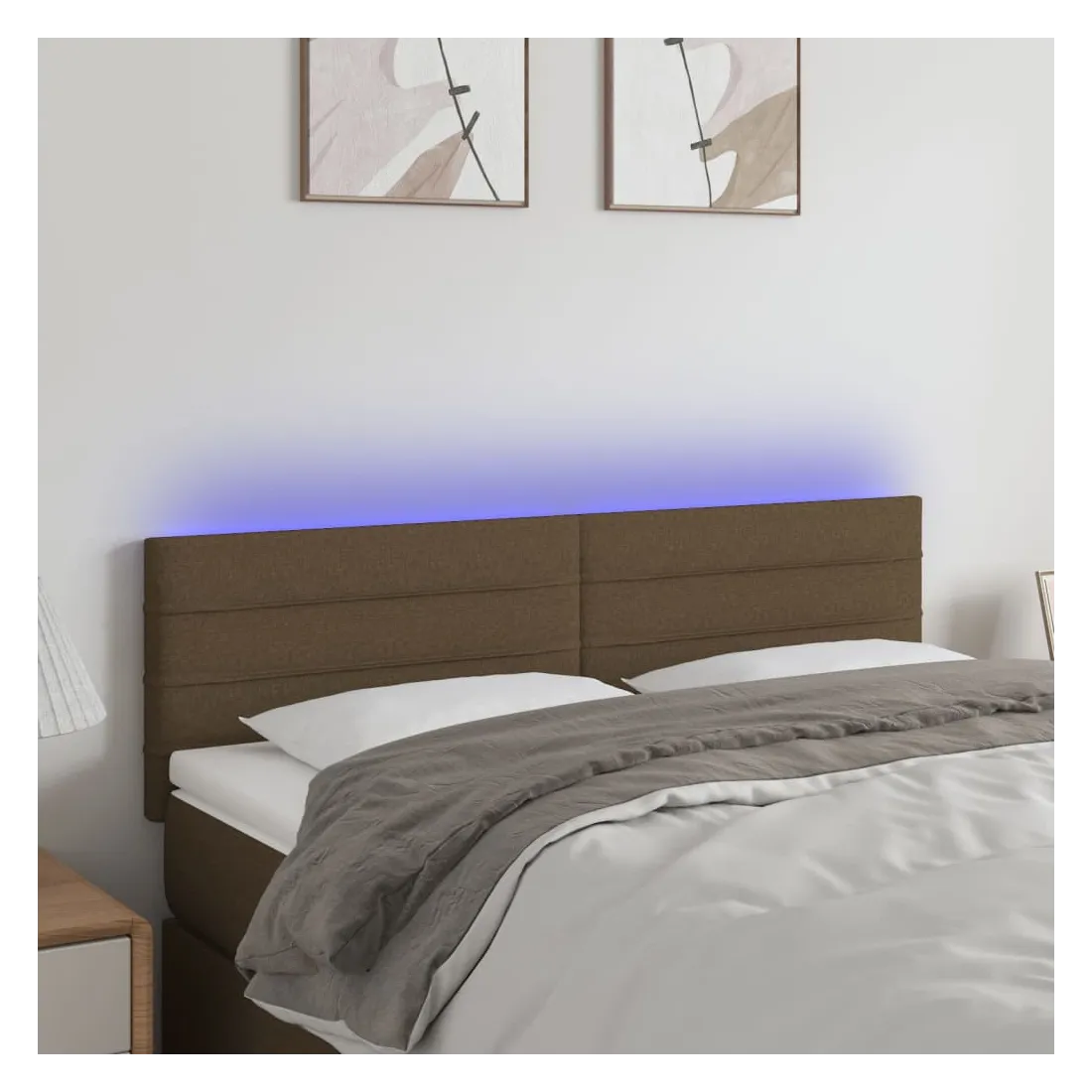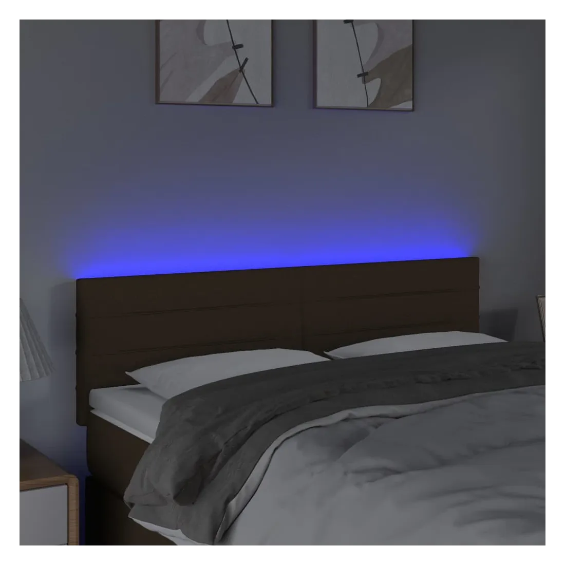 Tête de lit à LED Marron Foncé 144x5x78/88 cm Tissu