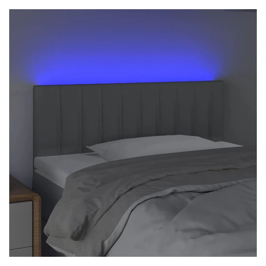 Cette tête de lit à LED classique, au design élégant, donne à votre cadre de lit une touche de modernité étonnante et convient parfaitement à toute chambre à coucher. Tissu durable : le tissu présente un aspect simple et épuré, et il est respirant et durable.LED colorée : apportez de l'éclairage dans l'obscurité avec des lumières LED colorées !Hauteur réglable : la tête de lit est réglable en hauteur selon vos préférences.Excellent soutien : la tête de lit vous offre un excellent soutien du dos lorsque vous êtes assis dans votre lit pour lire ou regarder la télévision.Bande à LED découpable : cette bande à LED flexible peut être ajustée en longueur. Le symbole des ciseaux indique où la bande peut être coupée en toute sécurité sans l'endommager. Remarque :Seule la partie avec un symbole de ciseaux peut être coupée et seule la partie avec l'USB continuera à fonctionner comme avant.Chaque produit est livré avec un manuel de montage dans la boîte pour un montage facile.Ce produit est doté d'un connecteur USB, mais la source d'alimentation certifiée de USB 5V n'est pas incluse.